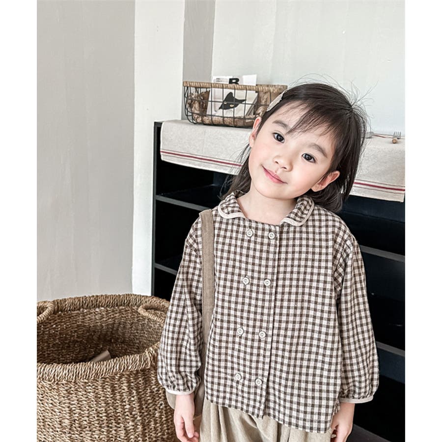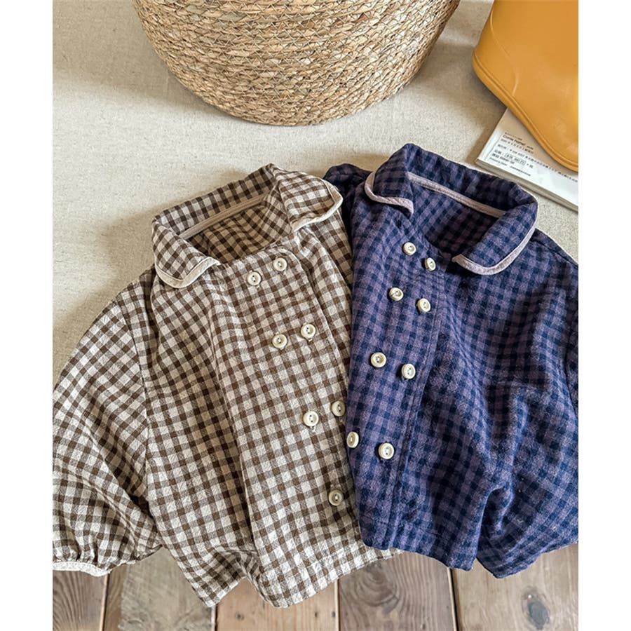 【ブルー】韓国子供服 ギンガムチェックブラウスシャツ キッズ
