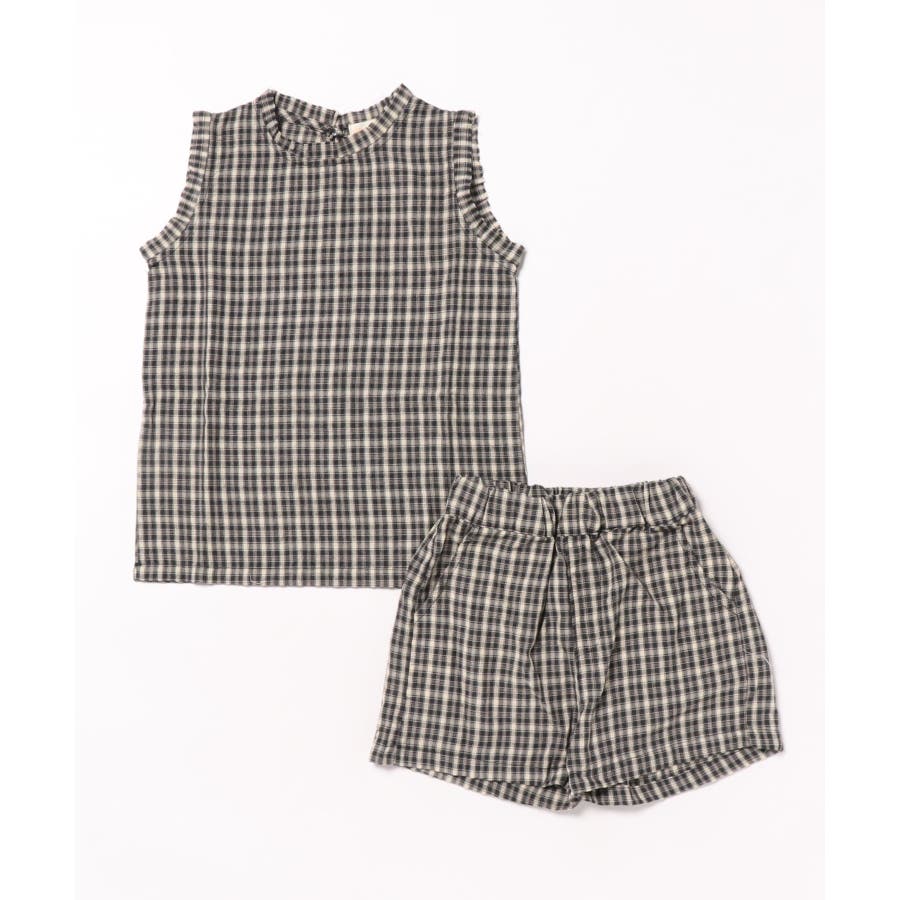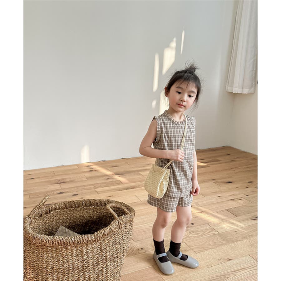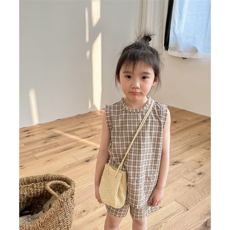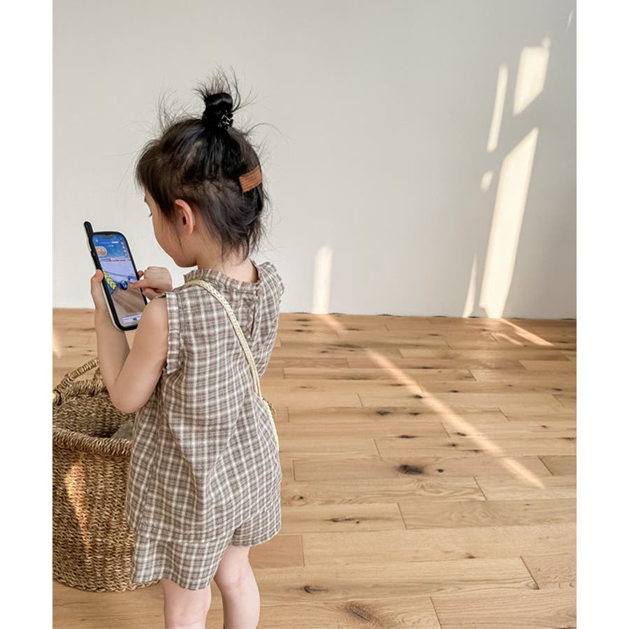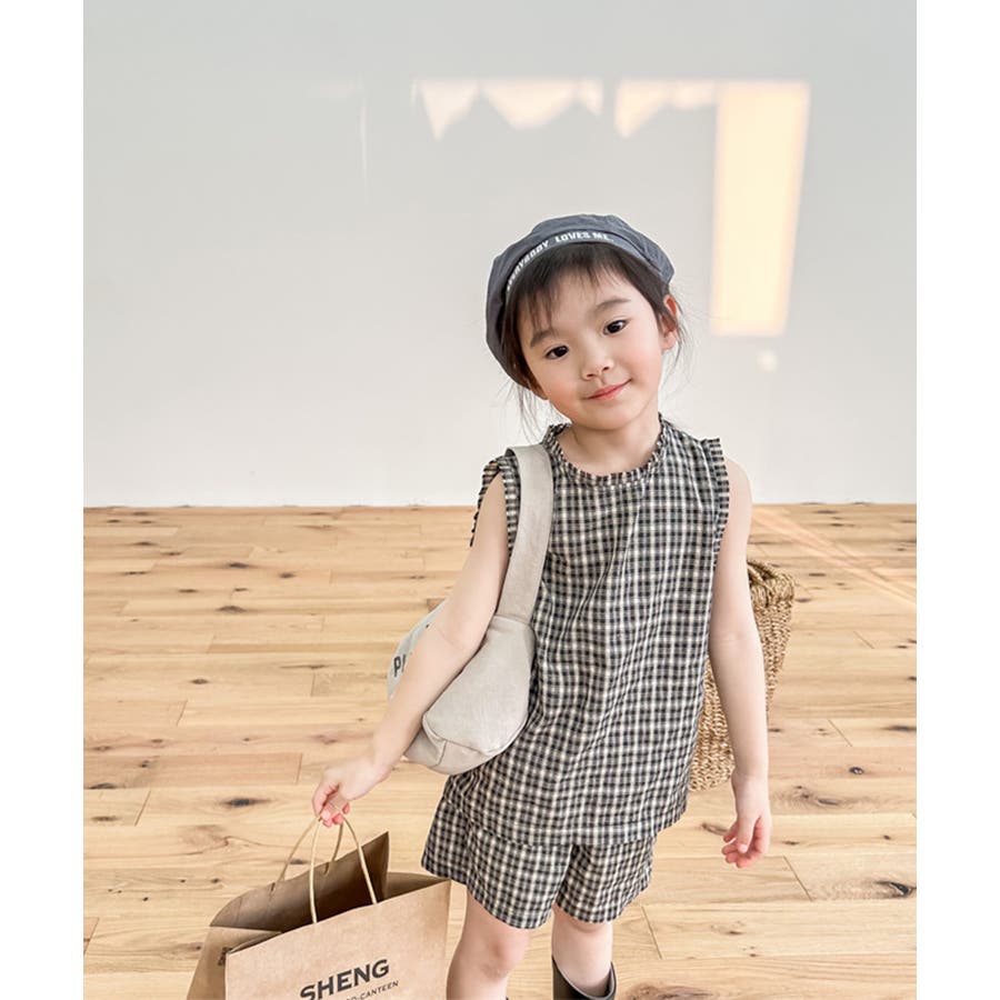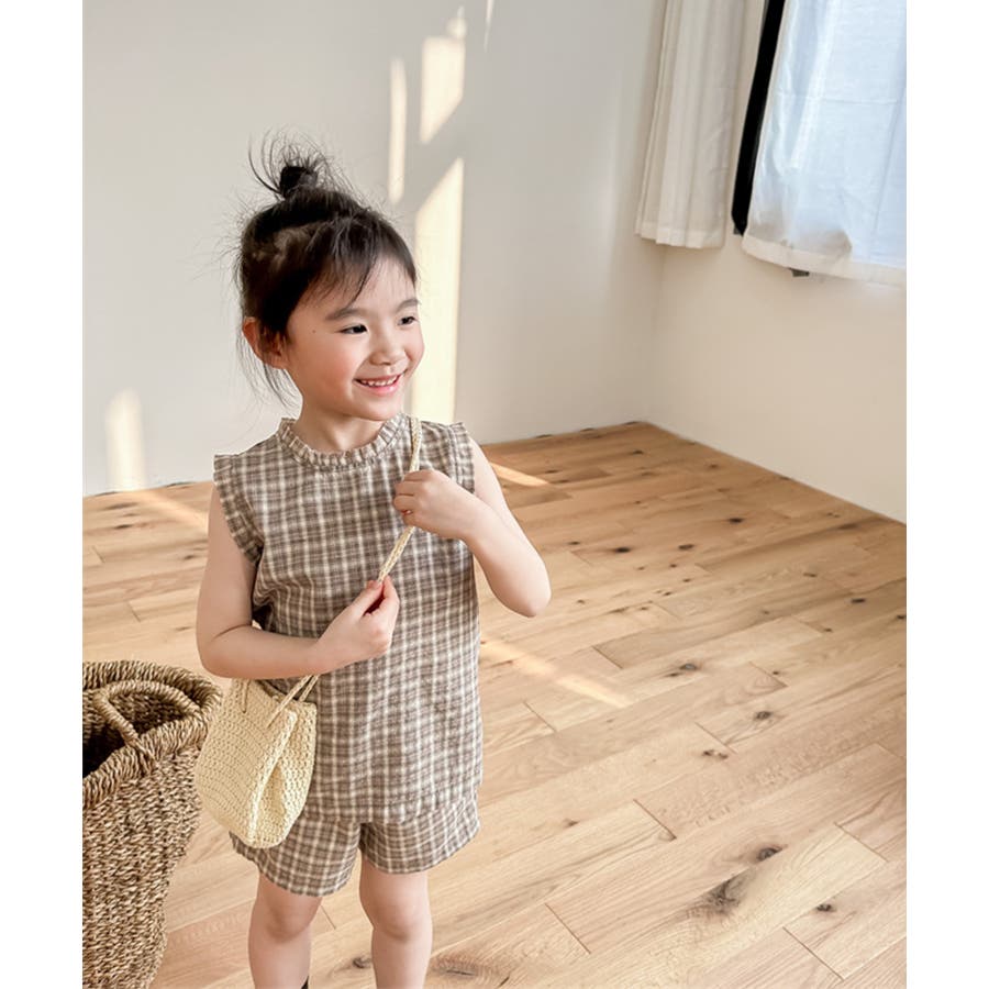 【aimoha-KIDS】韓国ライクな子供服を中心に展開したキッズブランドおしゃれでキュートな服をセレクトし、コスパの高い子供服を。【 チェック柄のキュートなセットアップ 】綿90%素材の可愛いチェック柄セットアップが登場!上下セットで着るのも良し、別々にコーディネートするのも良し。首周りもフリルになっており可愛いデザインがPOINT!