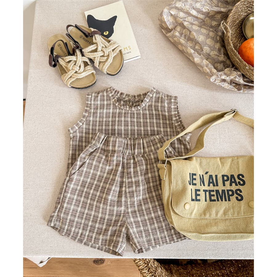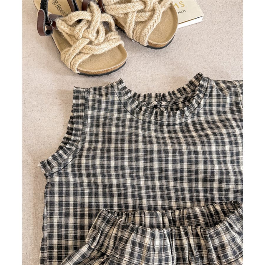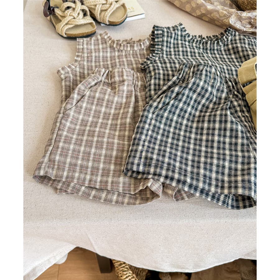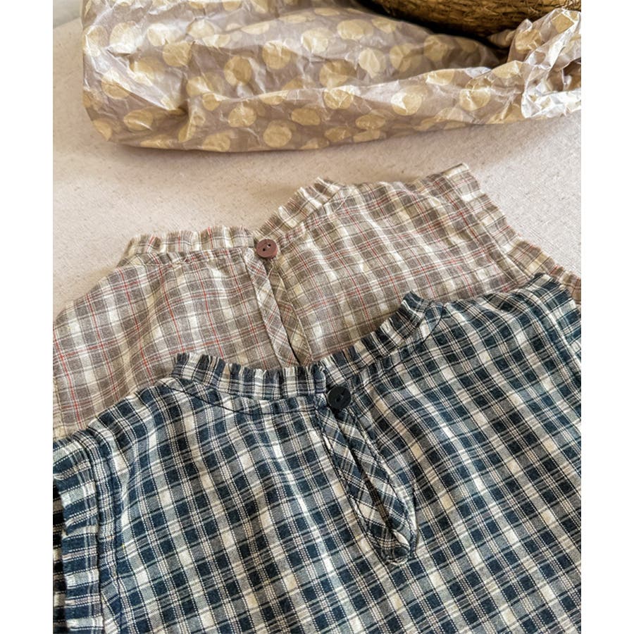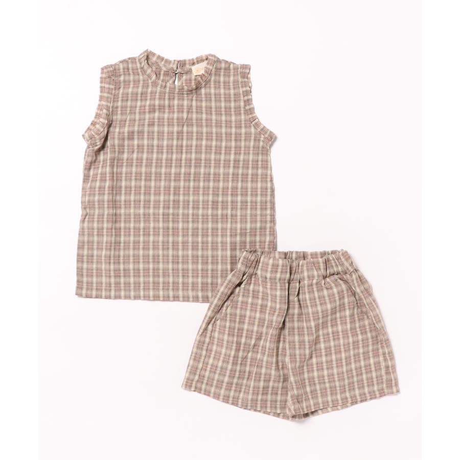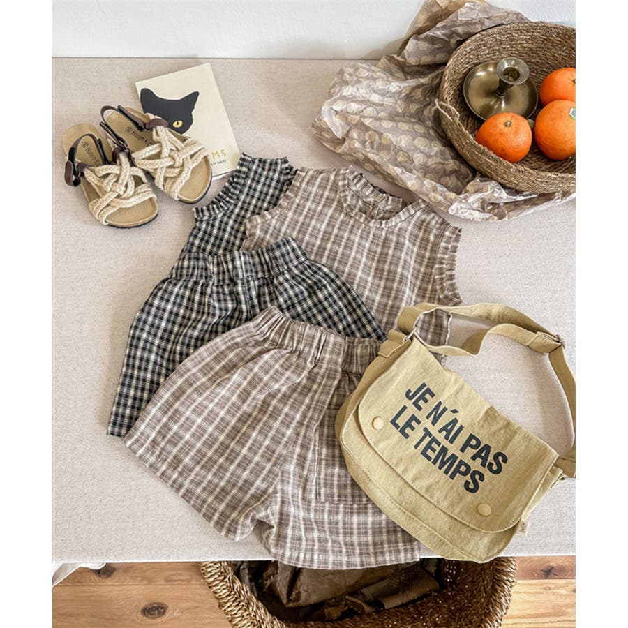 【aimoha-KIDS】韓国ライクな子供服を中心に展開したキッズブランドおしゃれでキュートな服をセレクトし、コスパの高い子供服を。【 チェック柄のキュートなセットアップ 】綿90%素材の可愛いチェック柄セットアップが登場!上下セットで着るのも良し、別々にコーディネートするのも良し。首周りもフリルになっており可愛いデザインがPOINT!