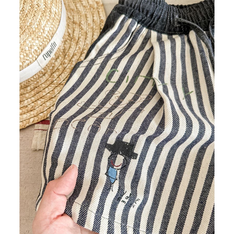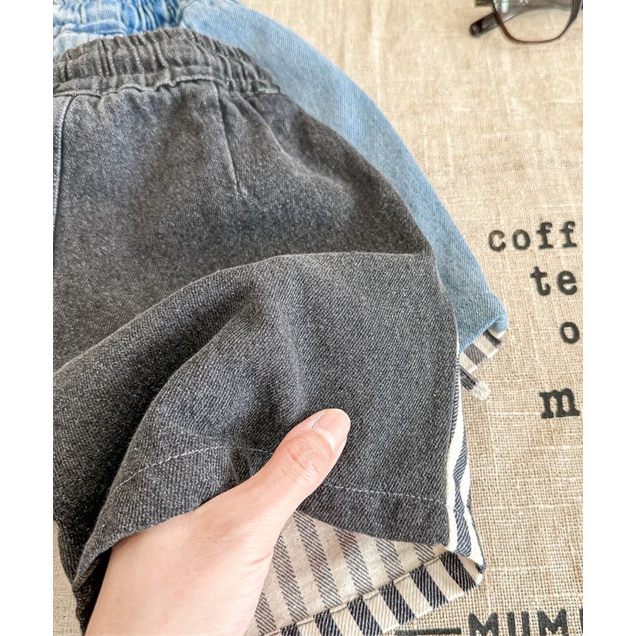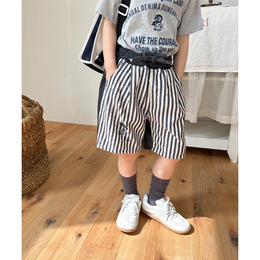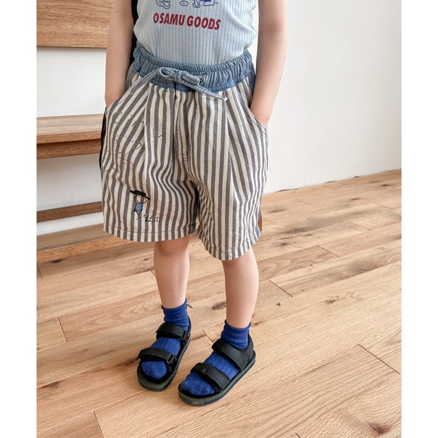 韓国ライクな子供服を中心に展開したキッズブランドおしゃれでキュートな服をセレクトし、コスパの高い子供服を。全面ストライプで背面がデニム生地の切り替えハーフパンツ登場!綿90%ブレンドのしっかりとした生地で安心。ウエストは総ゴム仕様で紐もついているので微調整も可能です。