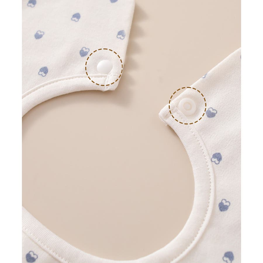 後ろはスナップボタン留めなので、さっと着せられます。付け襟のように可愛いデザインと柄ですのでコーディネートのアクセントにもぴったりです。
