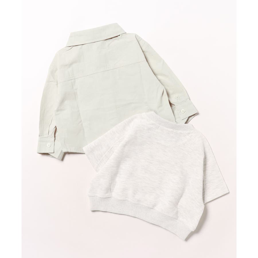 【aimoha-KIDS-】子供服 重ね着風無地ロングシャツ+半袖スウェット