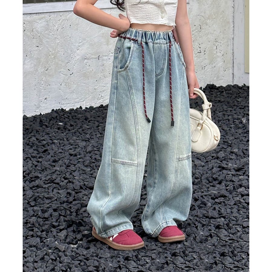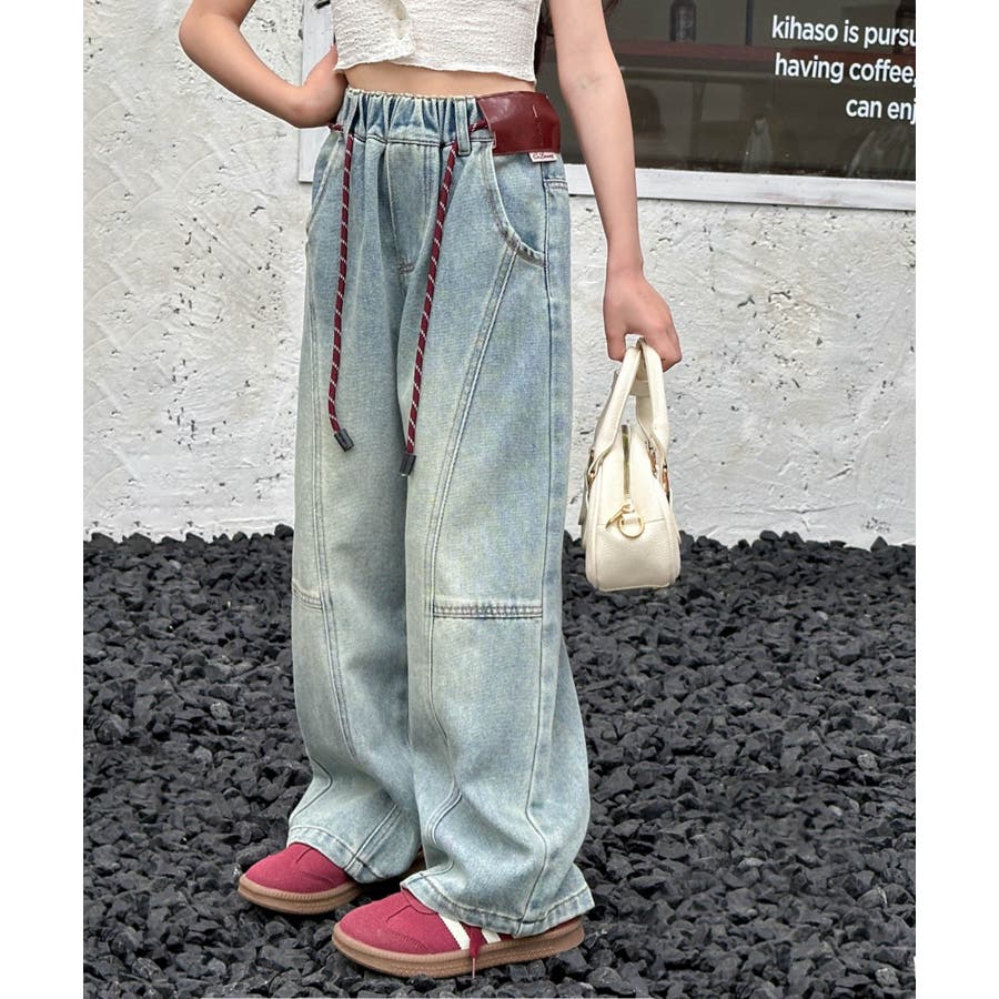 【Aimoha KIDS】ワイドシルエットキッズデニムパンツ