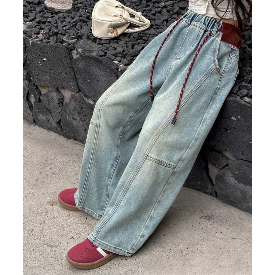 ゆったりとしたワイドシルエットが特徴のキッズデニムパンツです。