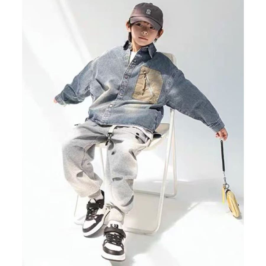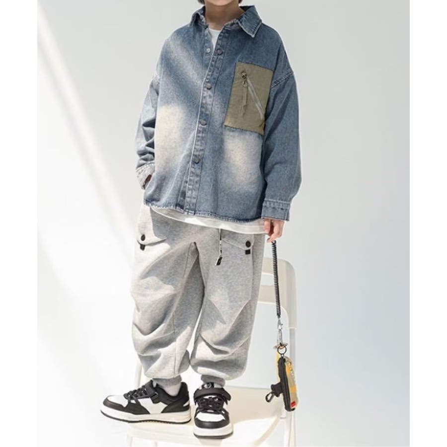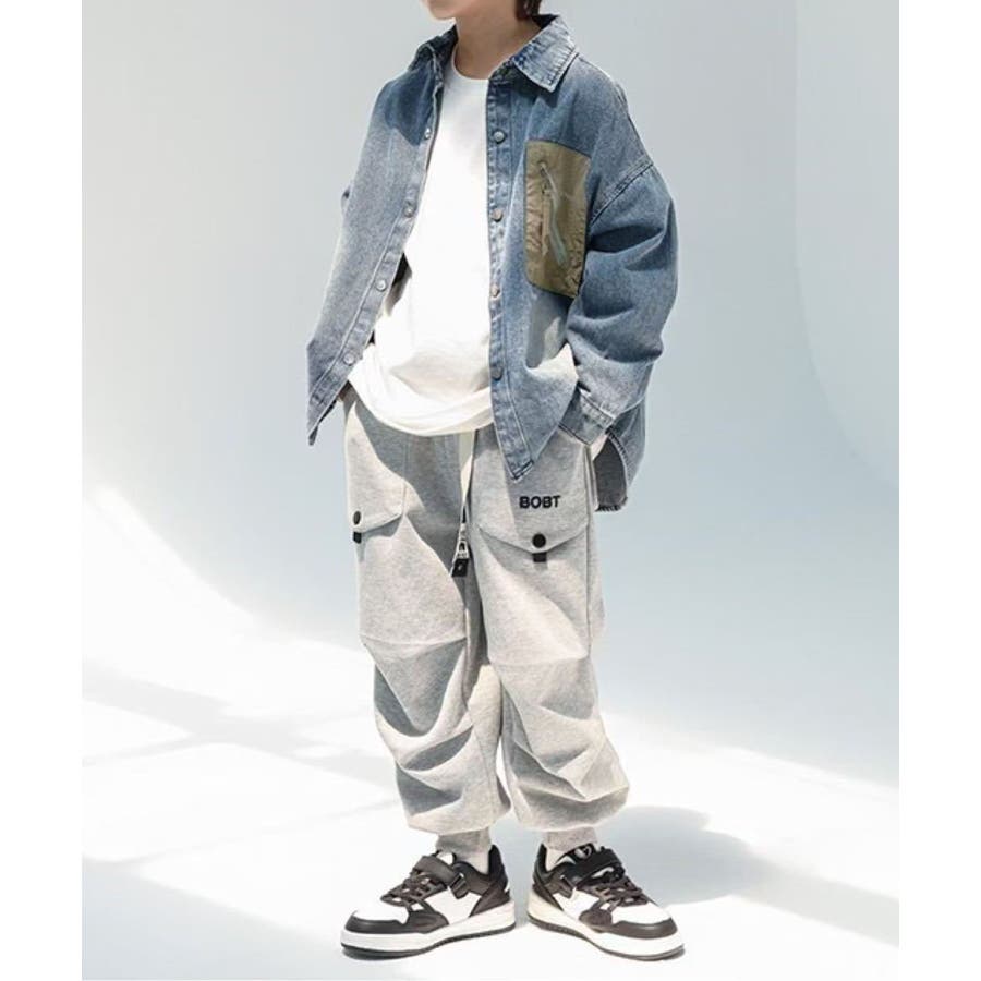 カジュアルでありながらトレンド感のあるデザインシャツ。胸ポケットのディテールがアクセントになり、個性的な仕上がり。オーバーサイズシルエットで動きやすく、アクティブなお子様に最適。しっかりとした耐久性を持ちながら柔らかさも兼ね備えています。通気性が良く、長時間の着用でも快適です。グレーのスウェットパンツや黒のキャップを合わせれば、元気でスタイリッシュなスタイルが完成。スニーカーでさらに動きやすさをプラス。