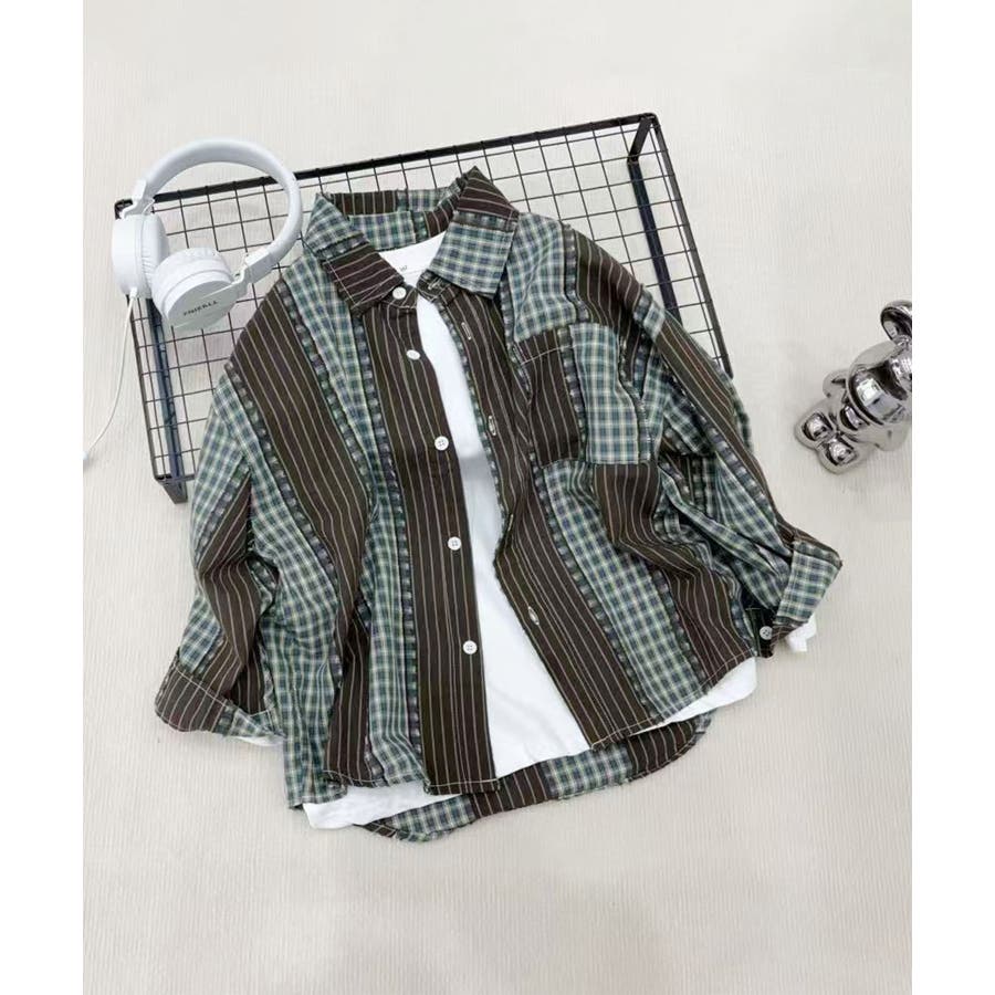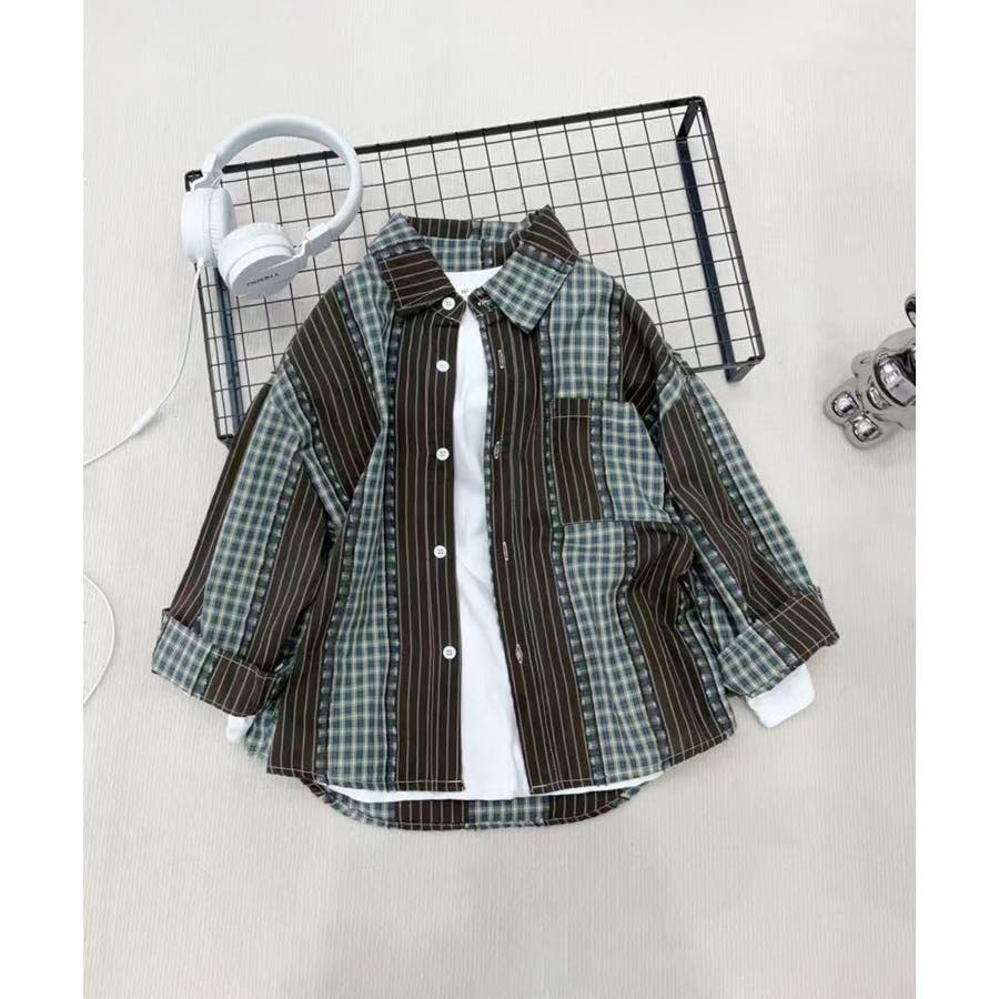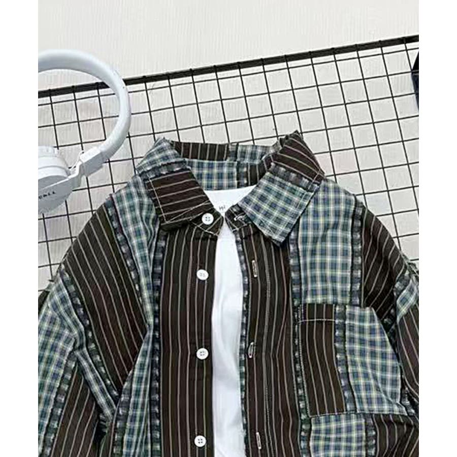 【aimoha KIDS】コントラストチェック柄シャツ