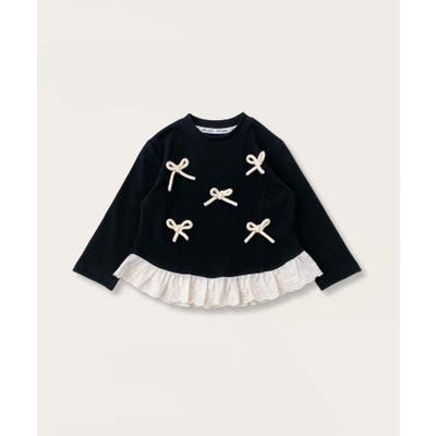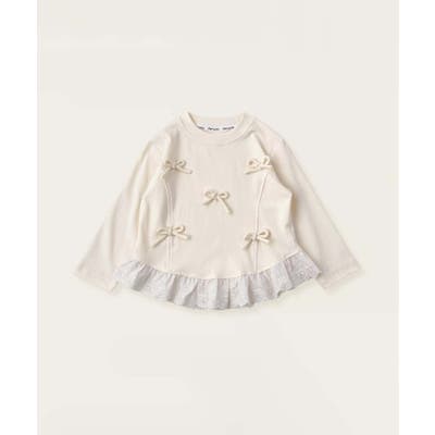 【aimoha-KIDS-】リボン付き裾フリルトップス