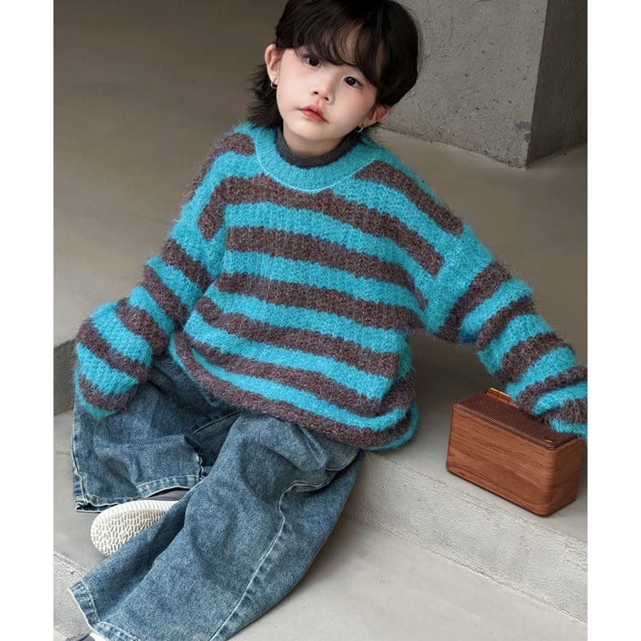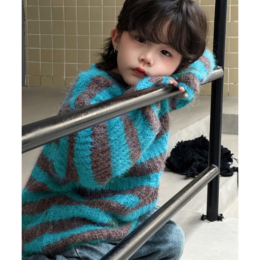 【aimoha-KIDS-】キッズ ボーダーニットプルオーバー