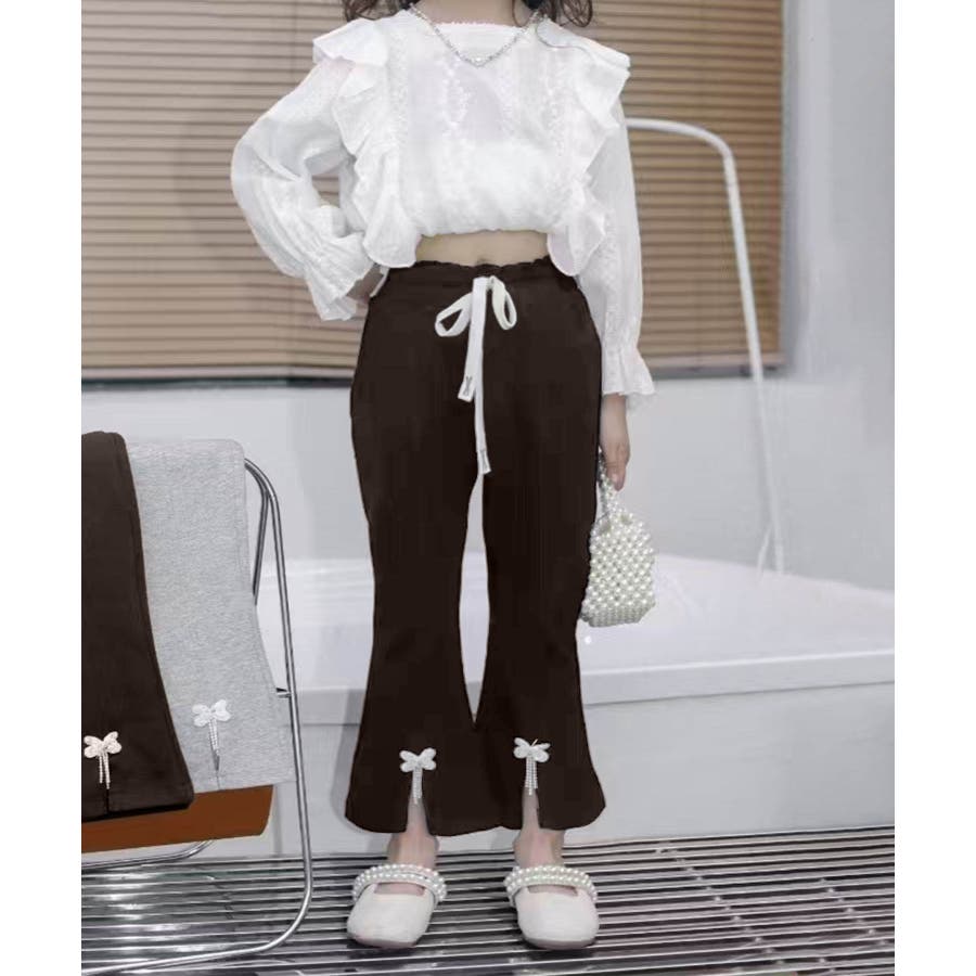 【aimoha KIDS】リボン付きフレアパンツ 90