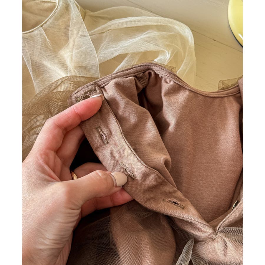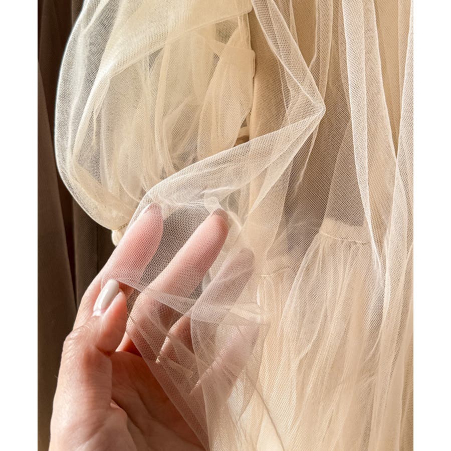 ボリューム感のあるシルエットと透け感がかわいいメッシュワンピースの登場です!袖はパフスリーブですが、透け感があるので柔らかい印象に。スカート部分はメッシュが重なりスカートの広がりがかわいいです!キレイめな小物と合わせれば、特別な日のお出かけにもぴったり!落ち着いた色合いなので普段使いもしやすく、1枚でシーンに合わせて使い分けできます。
