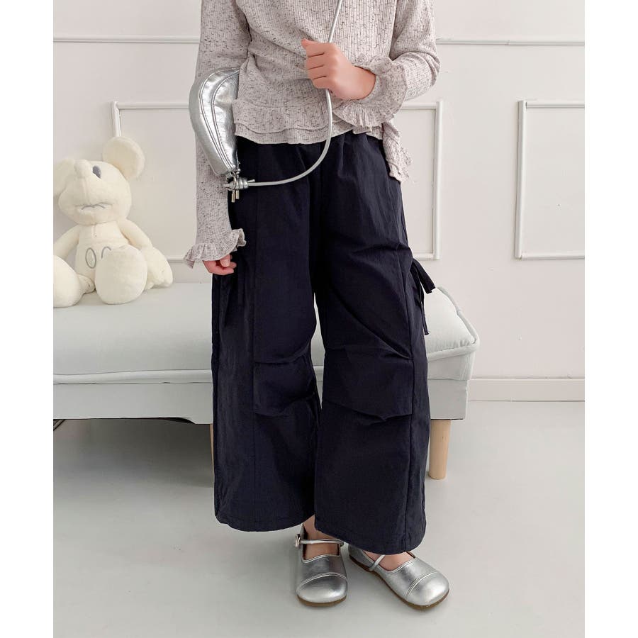 【aimoha-KIDS-】キッズ サイドリボンティアードワイドパンツ