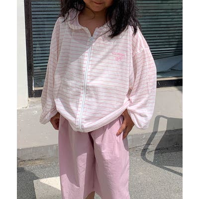 【aimoha-KIDS-】薄手ボーダージップアップパーカー