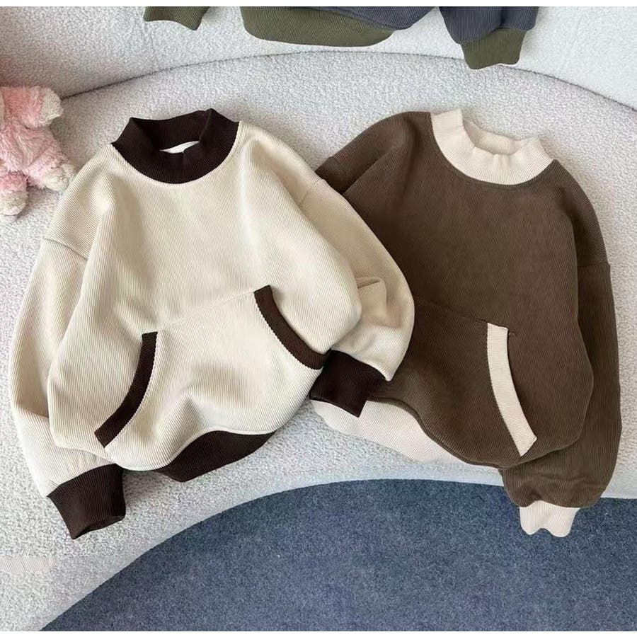 【aimoha-KIDS-】ポケット付き配色スウェット