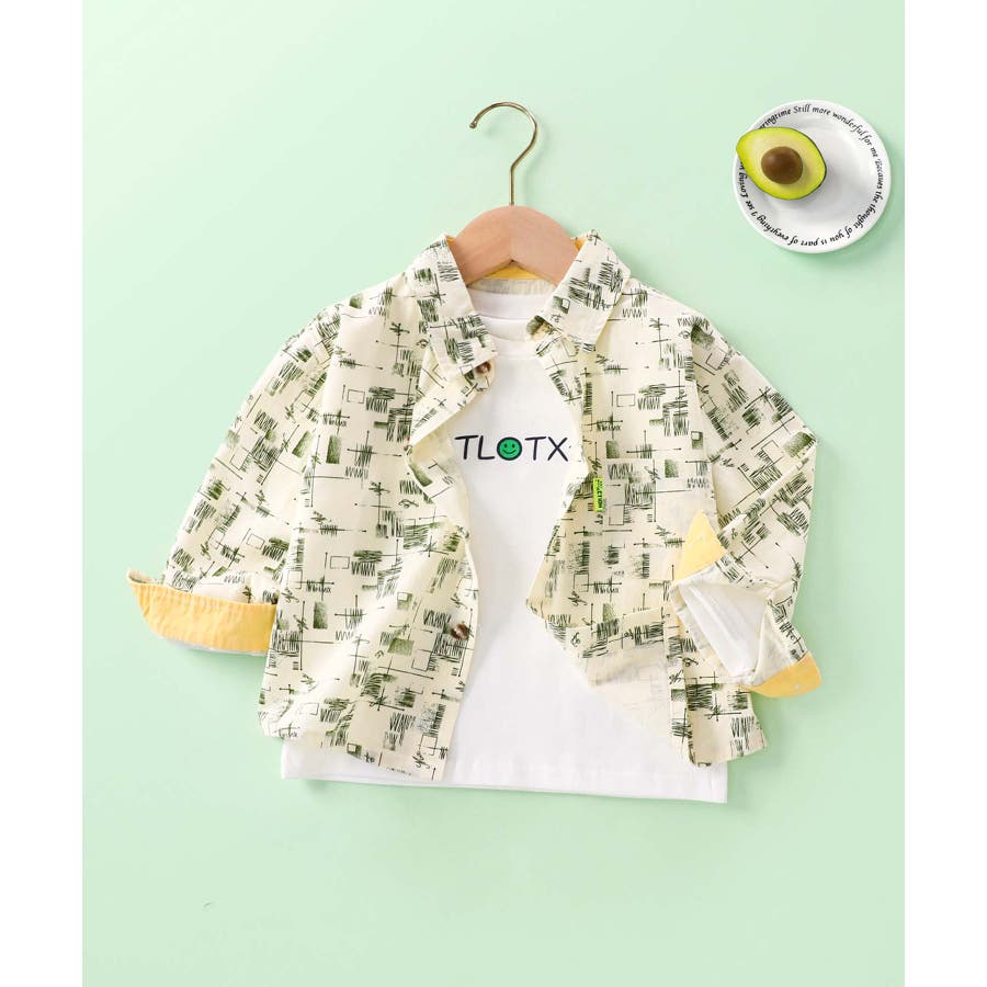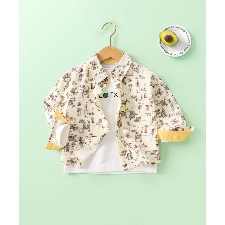 【Aimoha KIDS】総柄プリントロールアップキッズシャツ