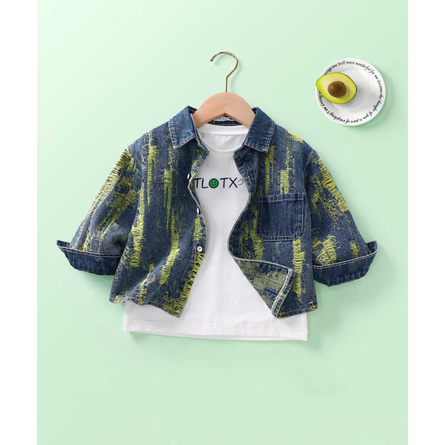 【Aimoha KIDS】ヴィンテージ風ウォッシュデニムキッズジャケット