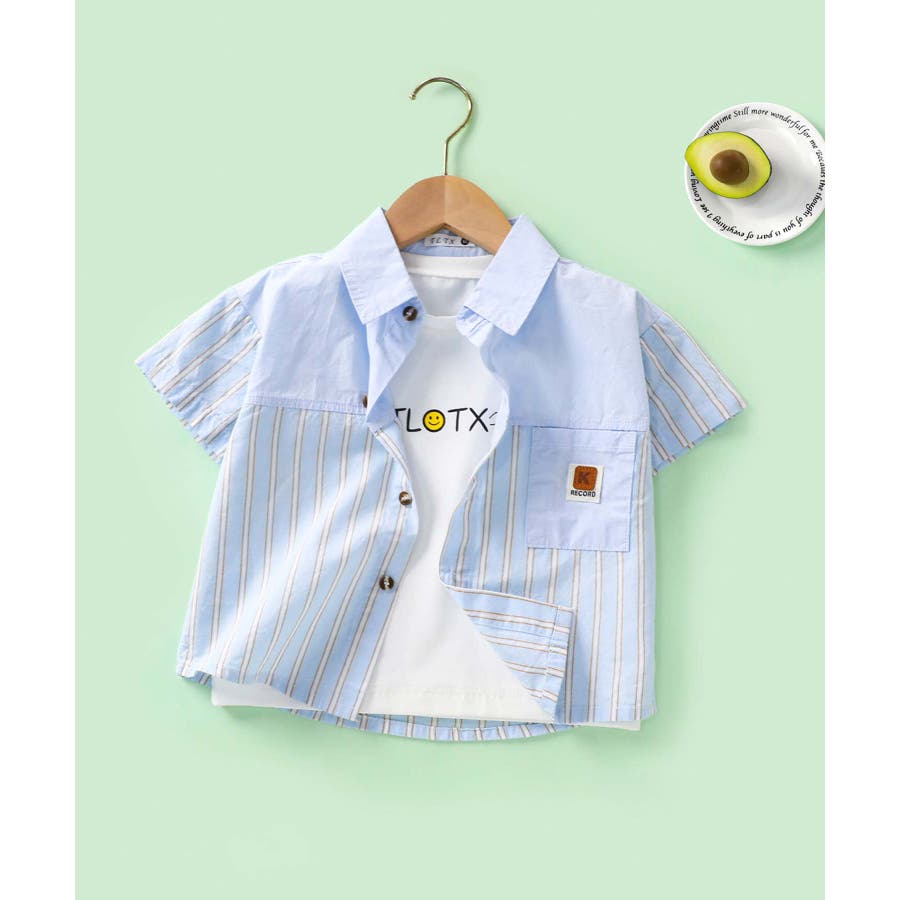 【Aimoha KIDS】ストライプ切り替えデザインキッズシャツ