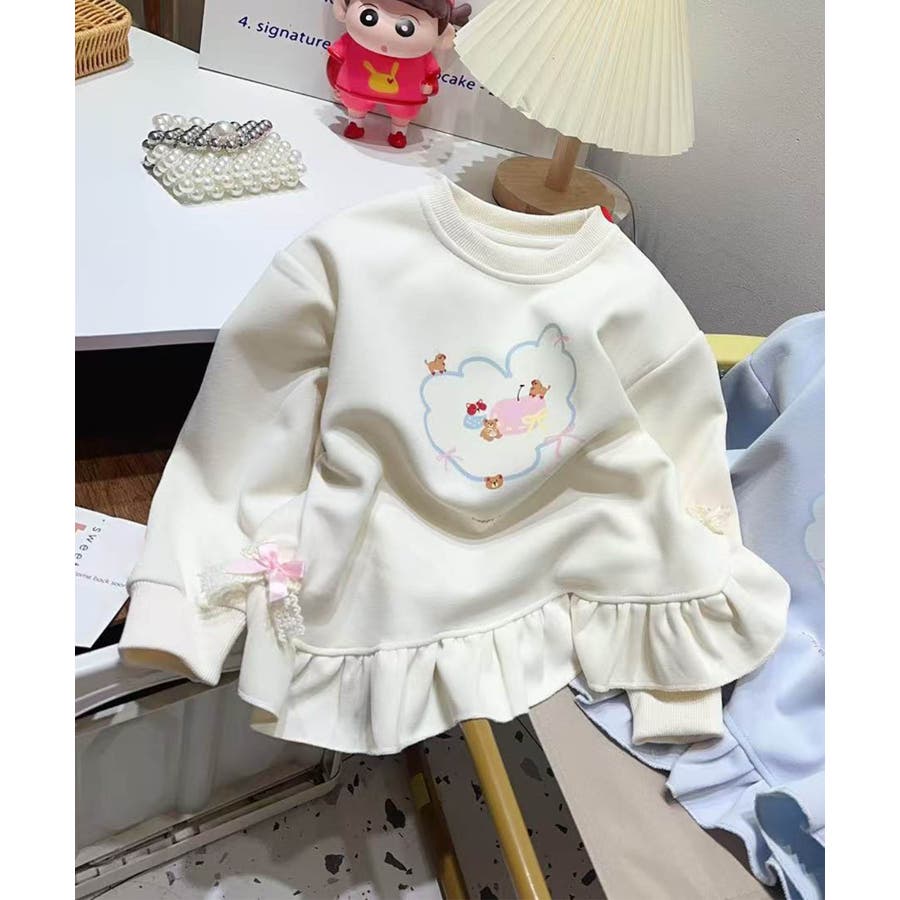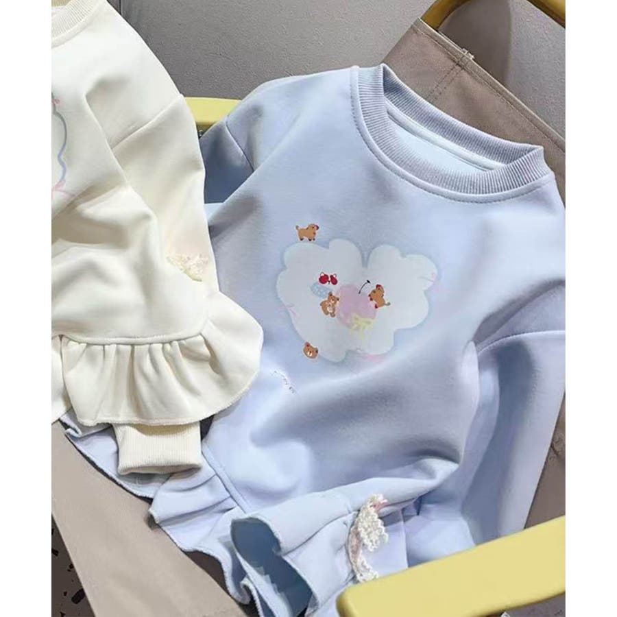 【aimoha KIDS】キッズ雲プリントフリルスウェット