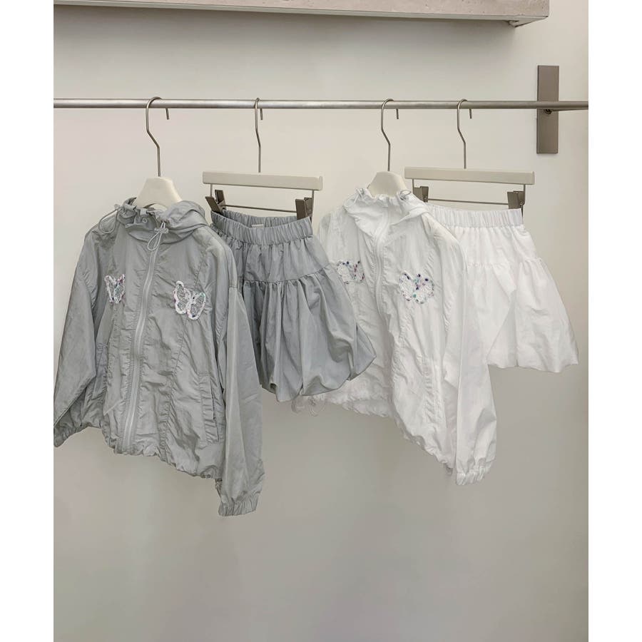 刺繍フード付きジャケット&フレアスカートセット セットアップ