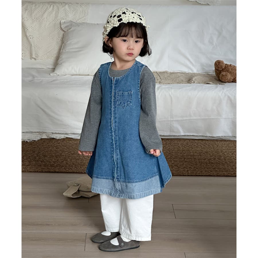 【aimoha-KIDS-】キッズ ジップアップデニムワンピー