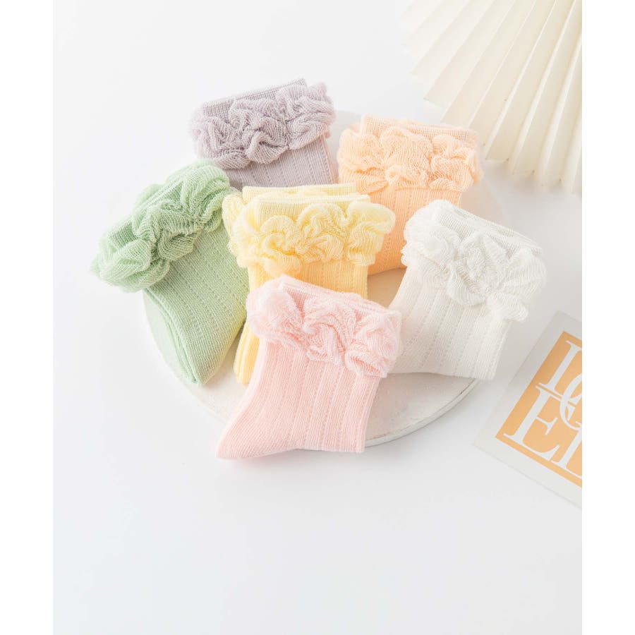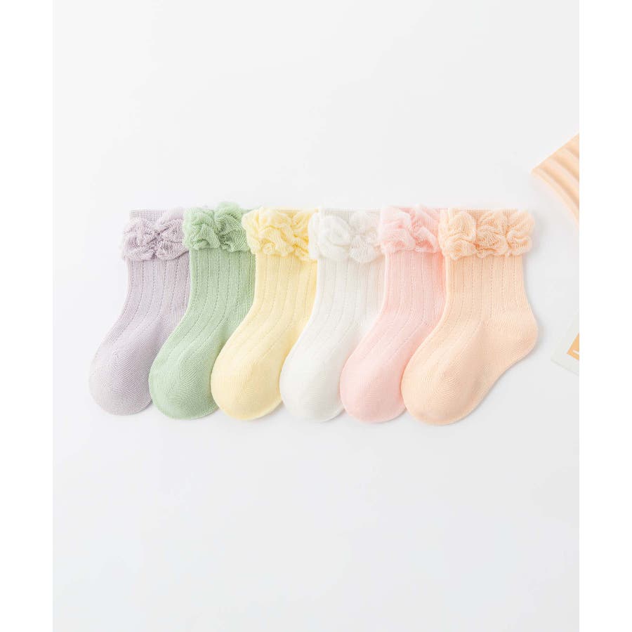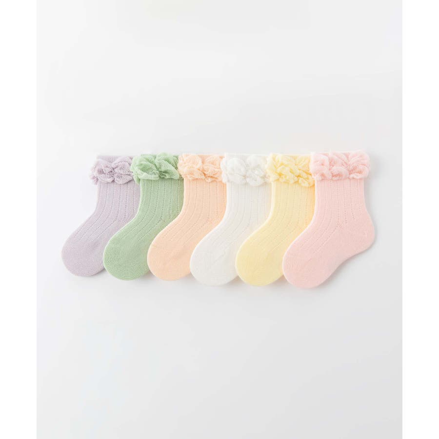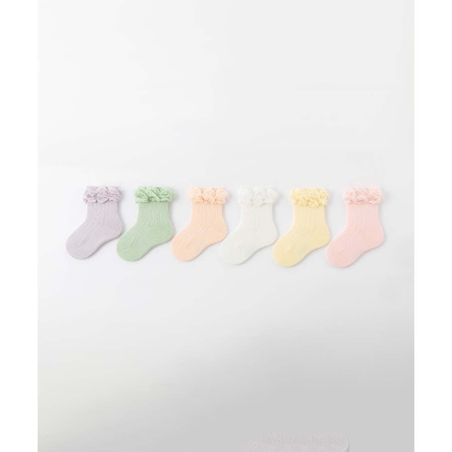 パステルカラーのフリルキッズソックス6足セット