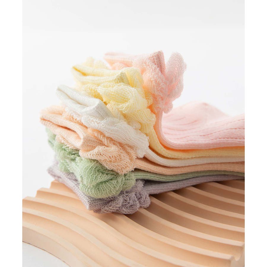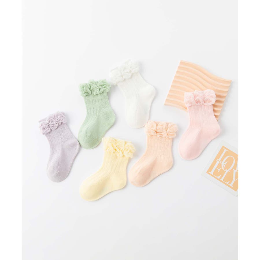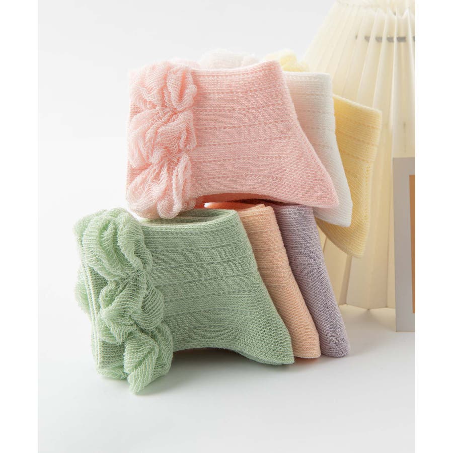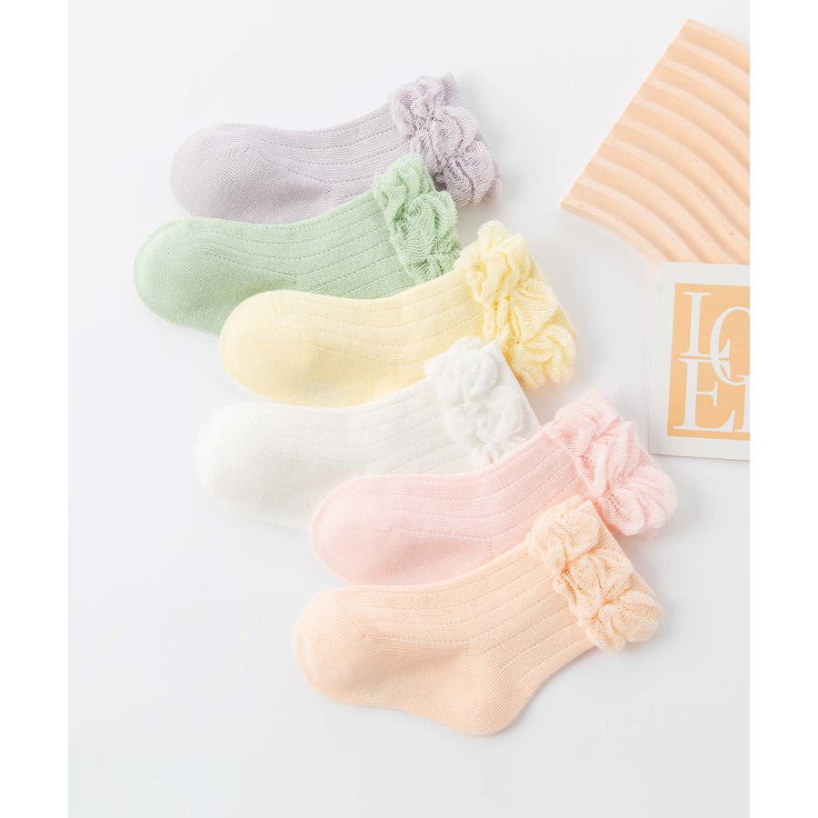 パステルカラーのフリルキッズソックス6足セット