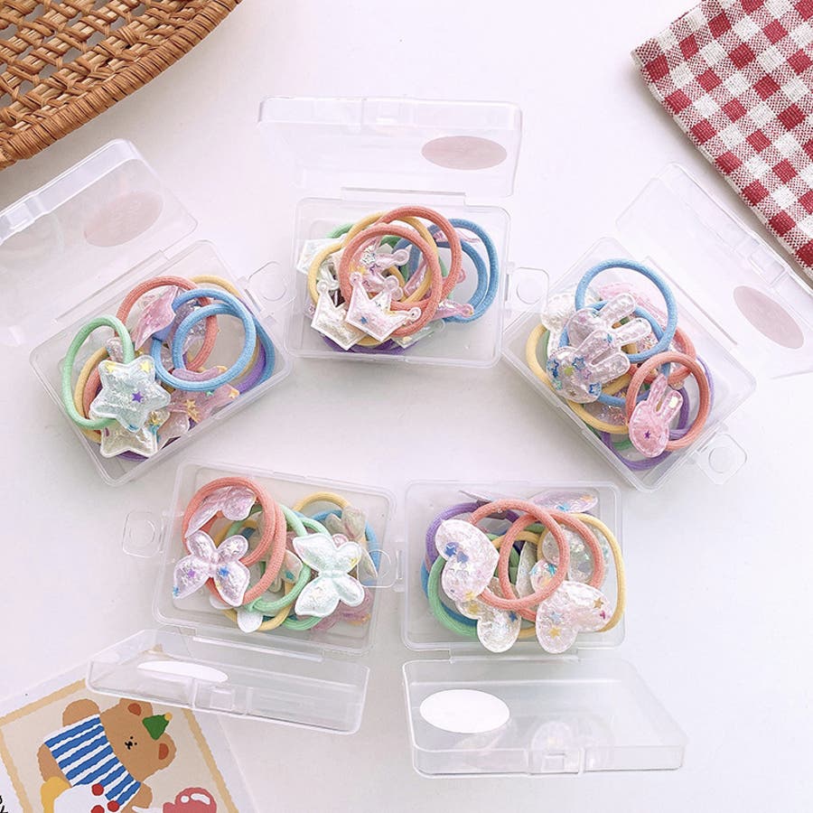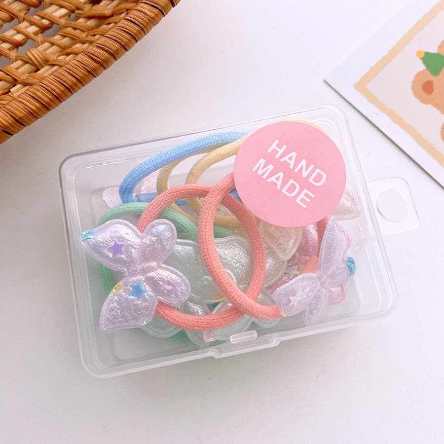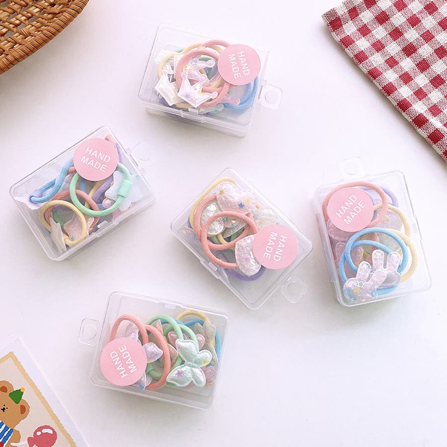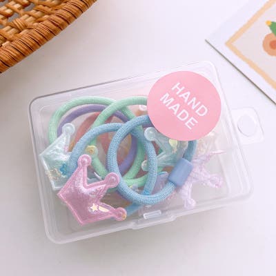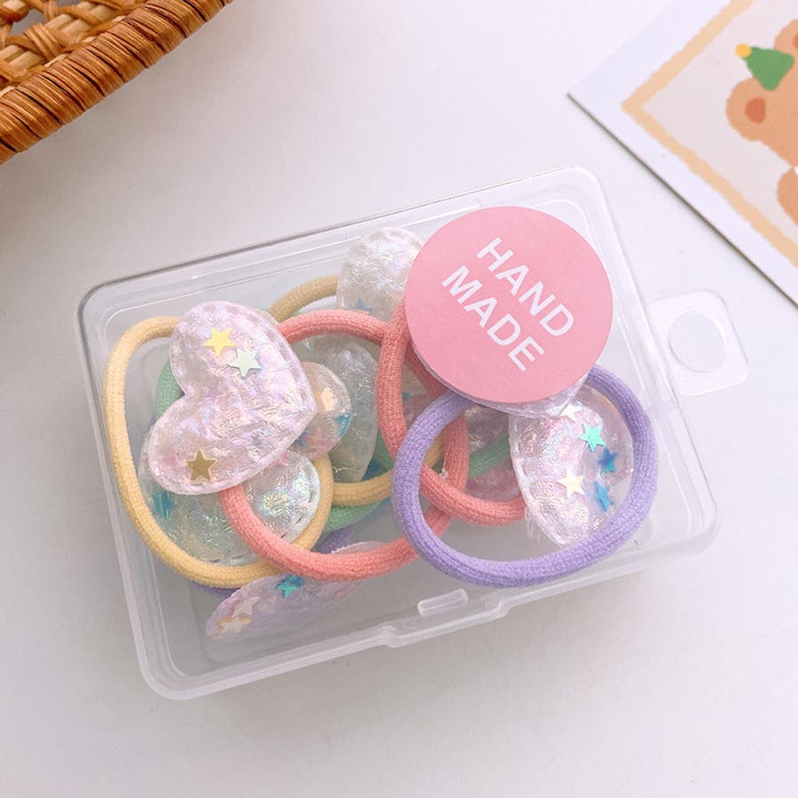 キラキラしたハートの小さなゴムがたくさん、ケースに入ってた!なぜか子供のゴムってすぐなくなるので、ケース付きは嬉しい