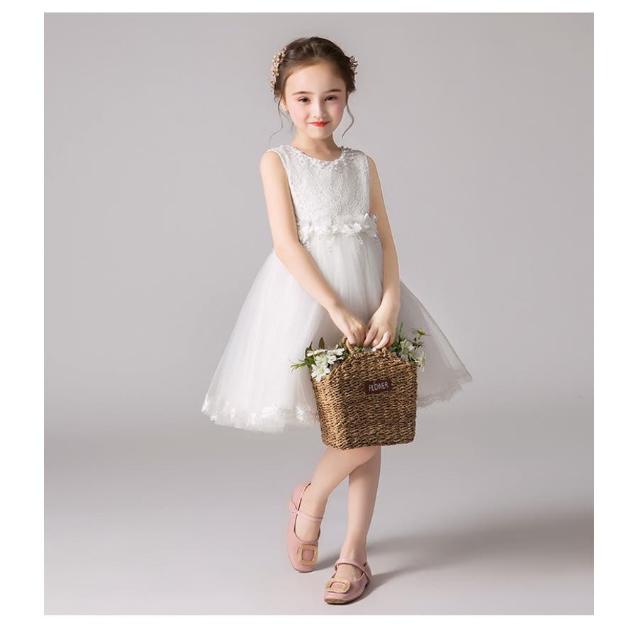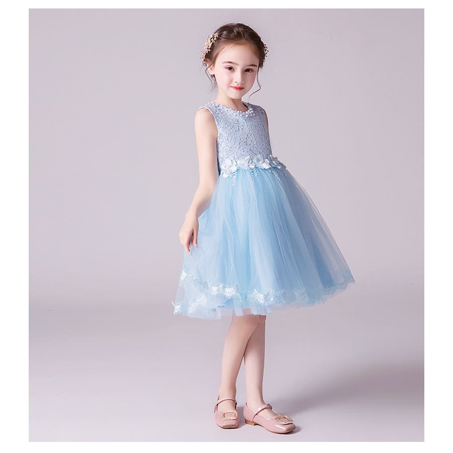 ノースリーブフラワー刺繍ドレス120cm-160cm(適齢:3歳から13歳)