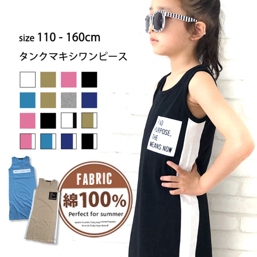 商品名 | キッズ ワンピース 子供服 マキシワンピ マキシ丈 タンクトップ リラックス 女の子 ガールズ プリント ロゴ ライン ジュニア 韓国子供服 夏服 110cm 120cm 130cm 140cm 150cm 160cm | ||||||