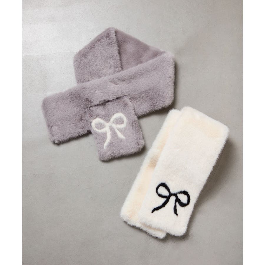 [KIDS]【差し込み型で安心・楽ちんあったか】リボンファーマフラー