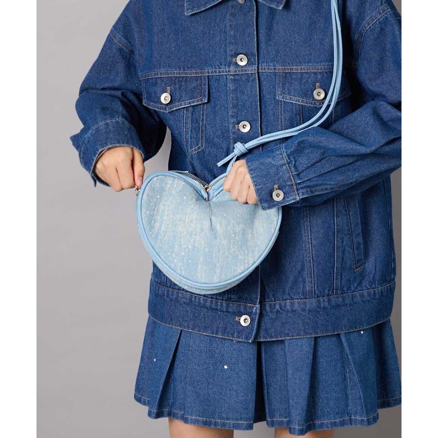 ・クリスタル×ハート×デニムのトレンド最前線のショルダーバッグ