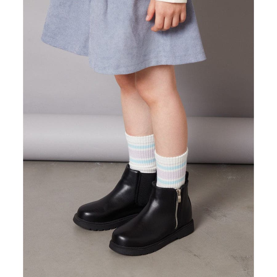 ・サイドゴア&ジップ付きデザインなので、子供でも着脱しやすく履きやすい。