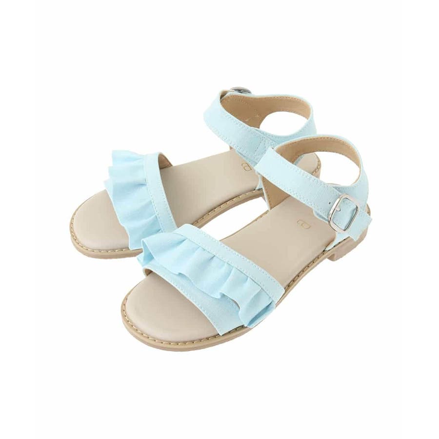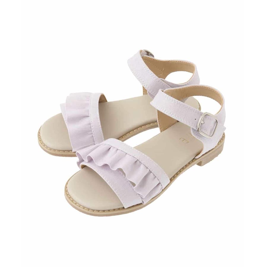 [19-23cm][キラキララメ][コットン素材の優しい風合い]フリルサンダル