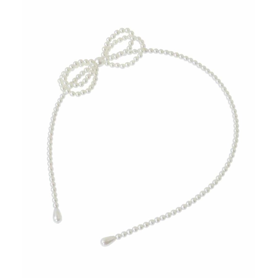 ・小さめなパール調のパーツでできたリボンカチューシャ。