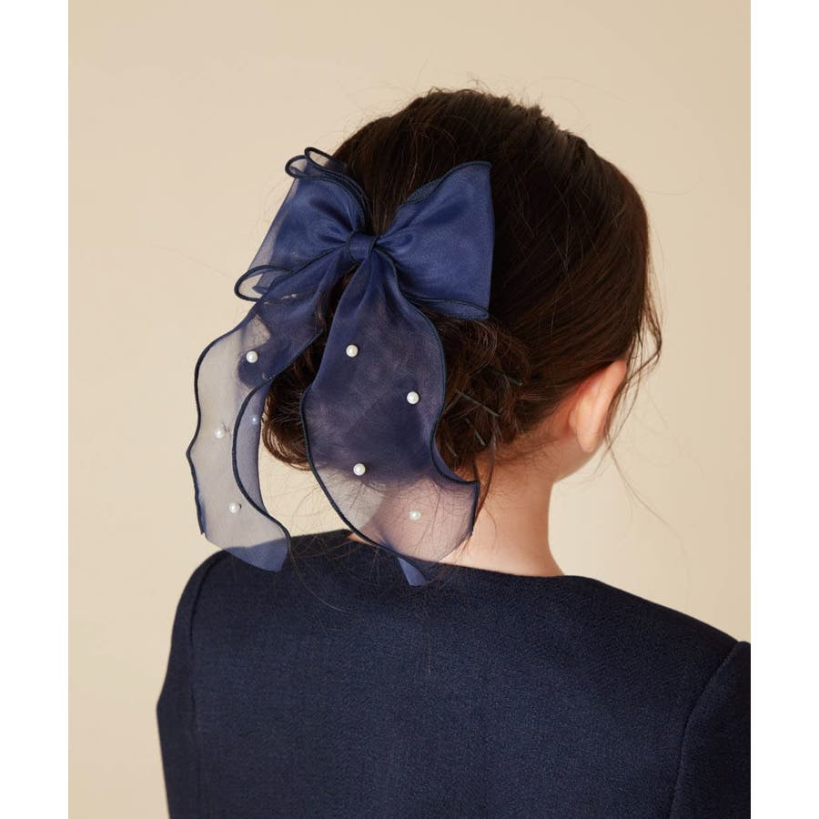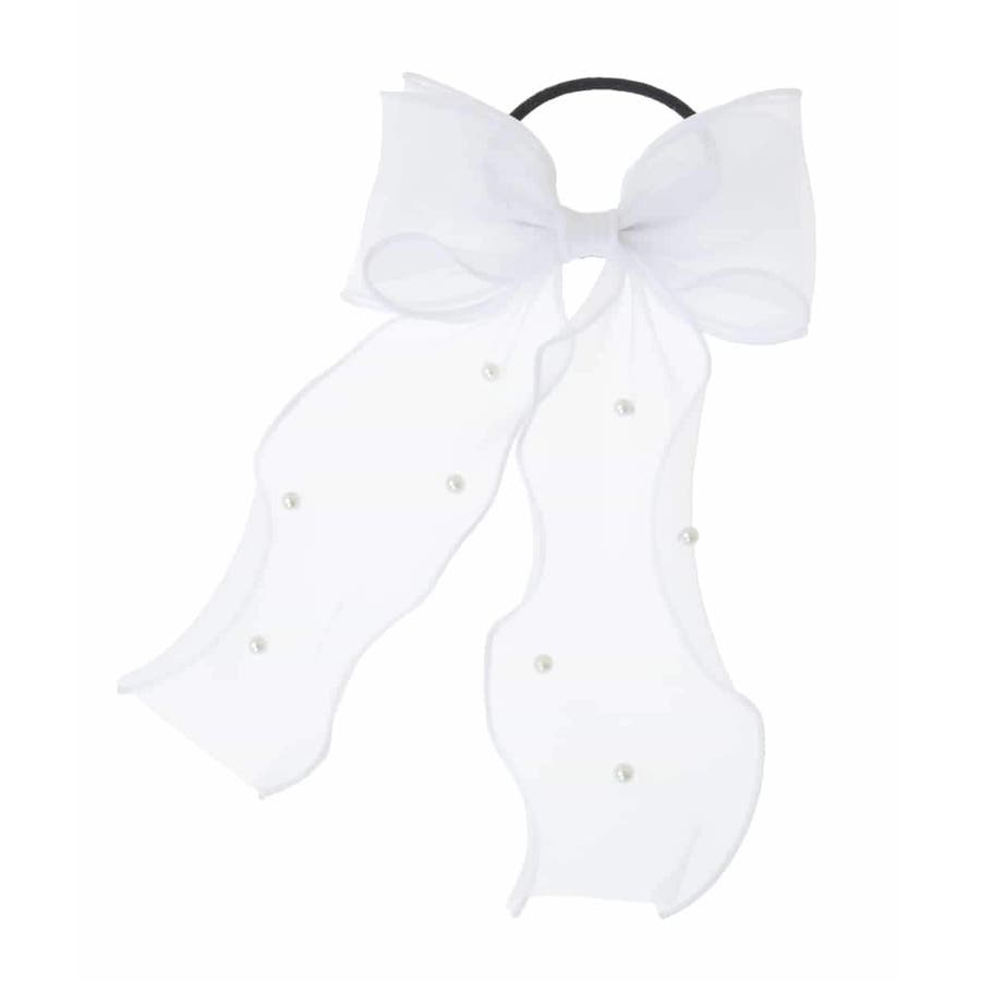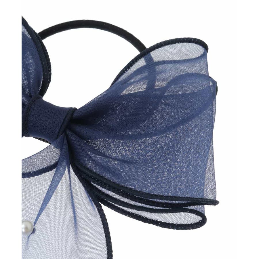 ・人気のシアー素材のリボンポニーにパールがついて上品さをプラス。