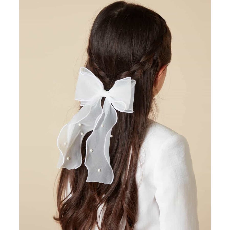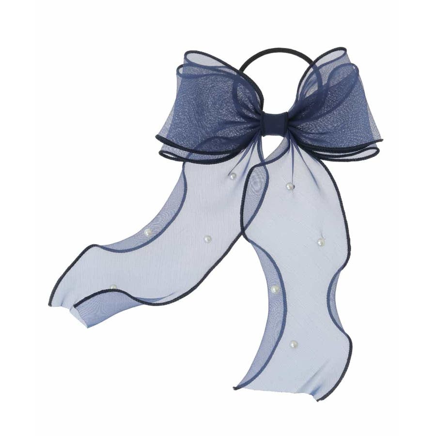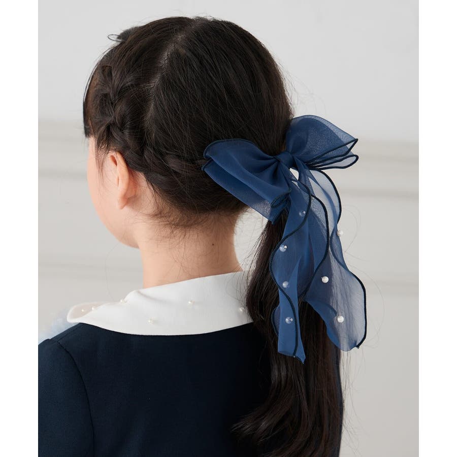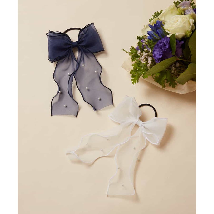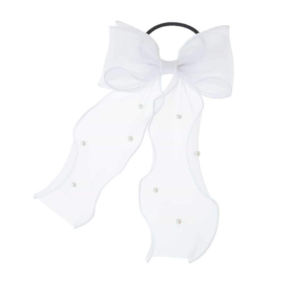 ・人気のシアー素材のリボンポニーにパールがついて上品さをプラス。