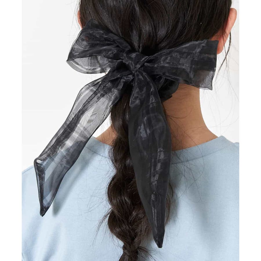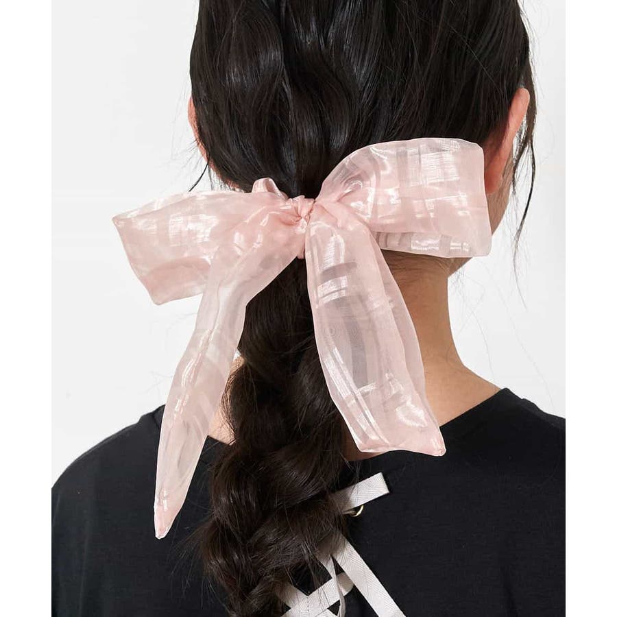 今年らしいヘアアレンジに一押しの、大ぶりなリボンが付いたヘアゴムです。