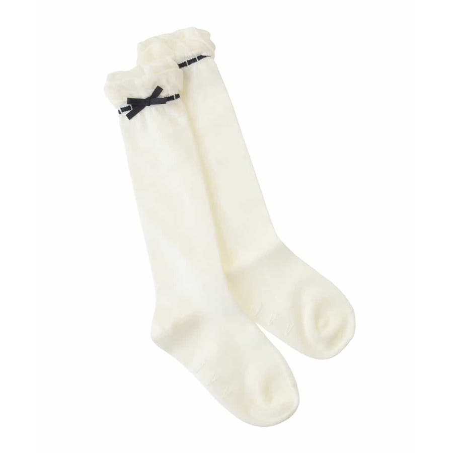 ・お花が咲いたようなスカラップカットが可愛いハイソックス。