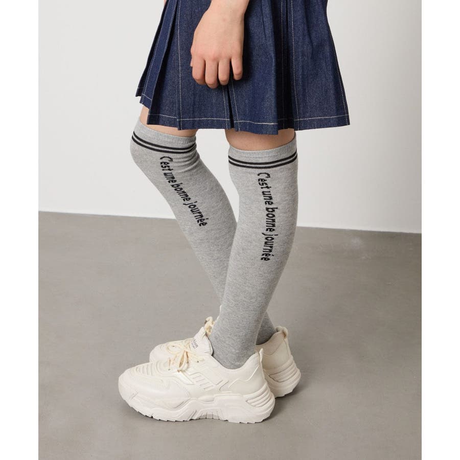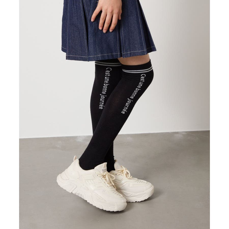 ・サイドに入ったメッセージラインが大人っぽいニーハイソックス。