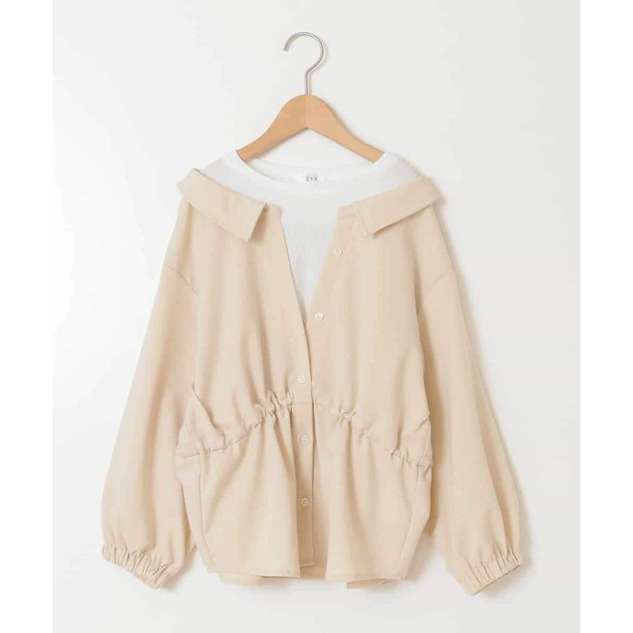 ・シャツとインナーの抜き衿コーデが楽しめるトップス。