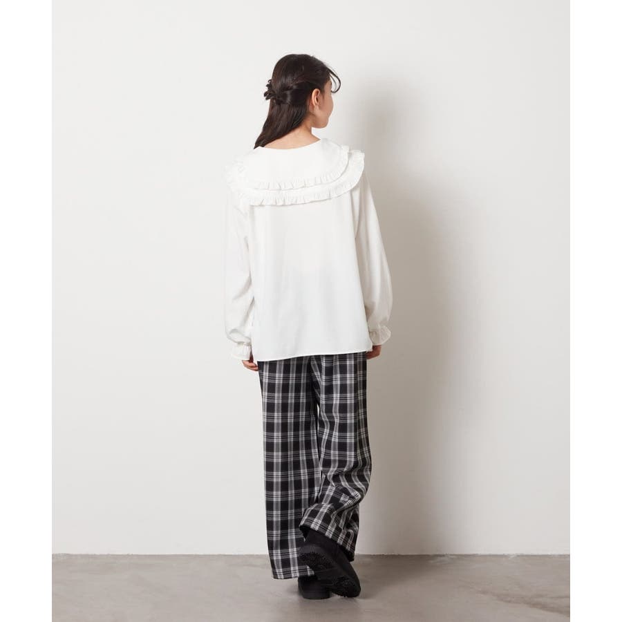 ・上品なフリル衿がスタイリングを華やかにするブラウス。