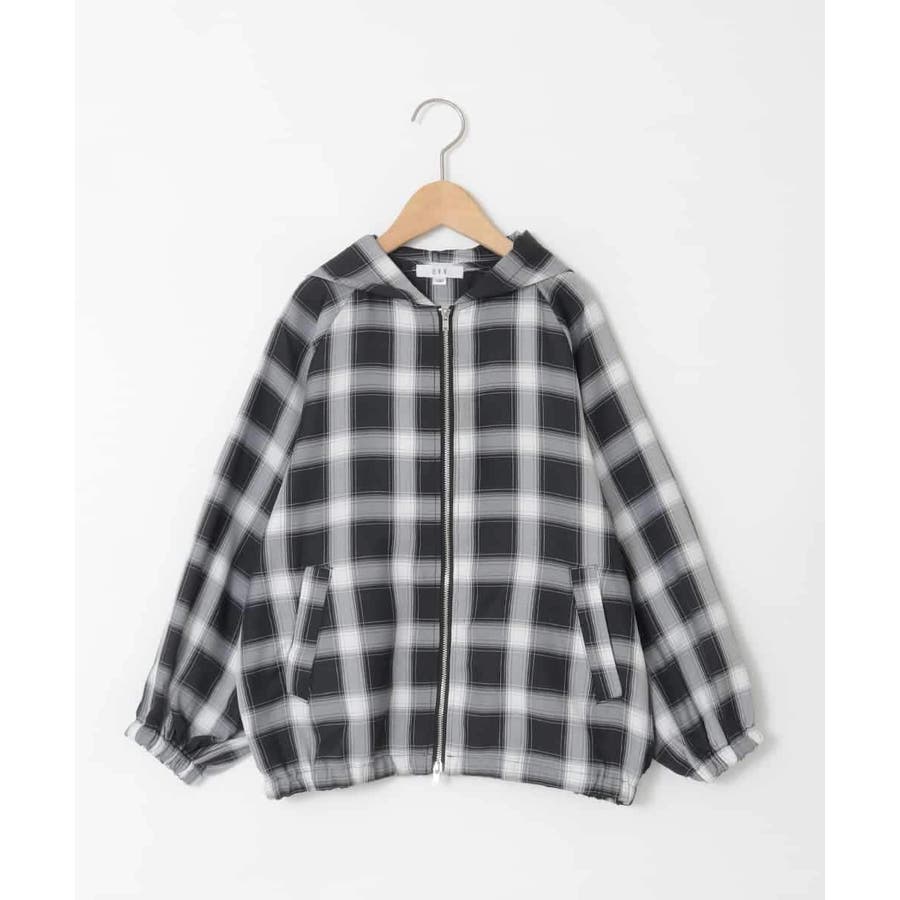 ・チェック柄が目を惹くフード付きシャツブルゾン。