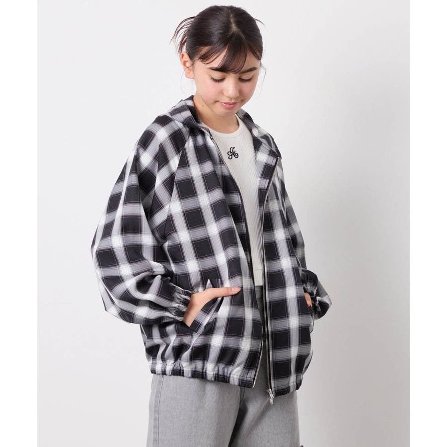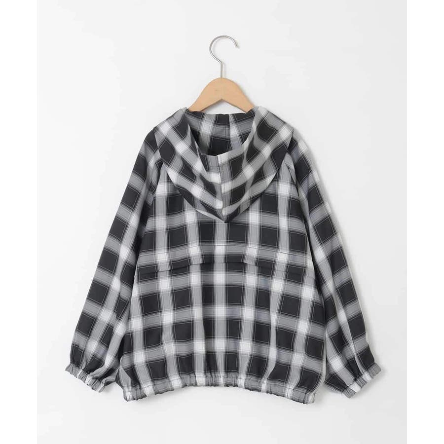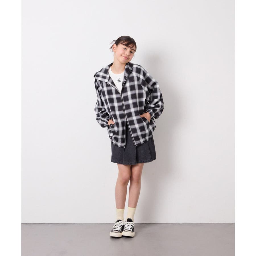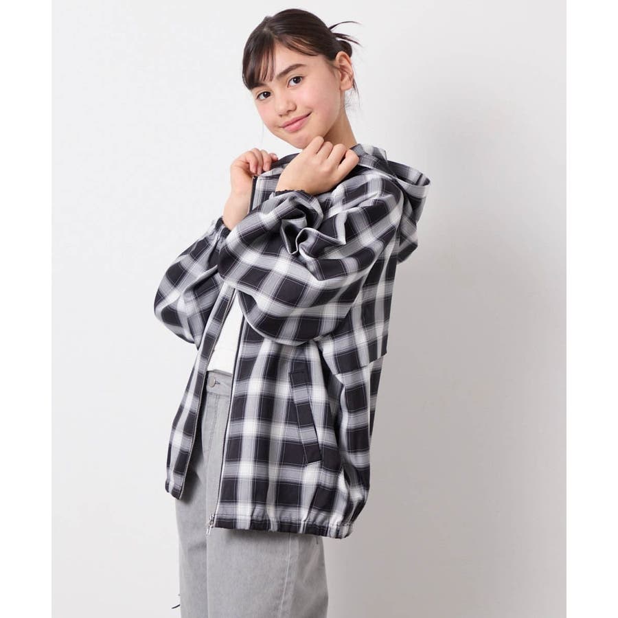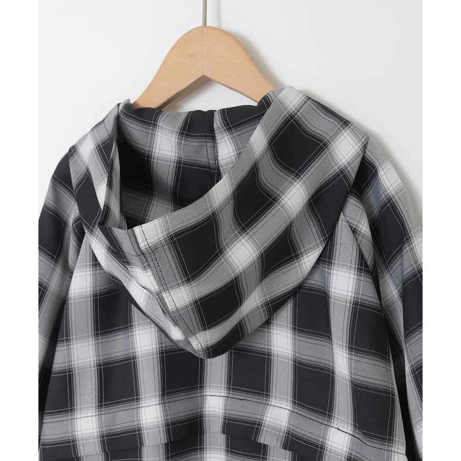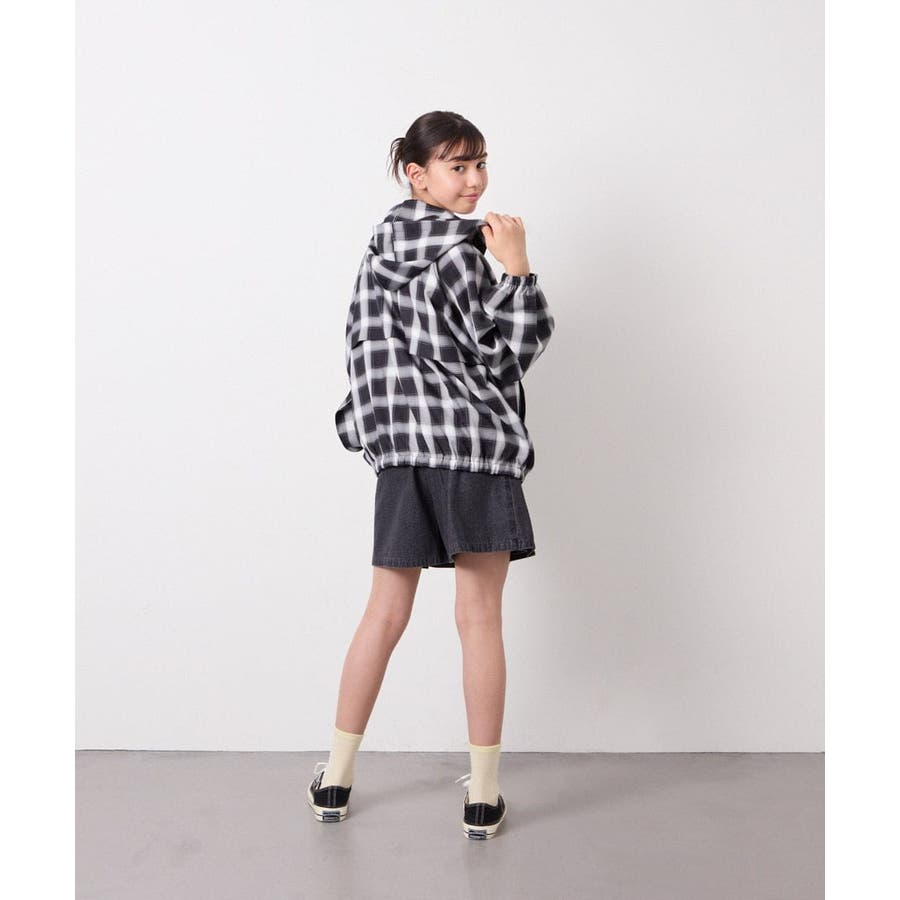 [130-160]フーディーチェックシャツブルゾン