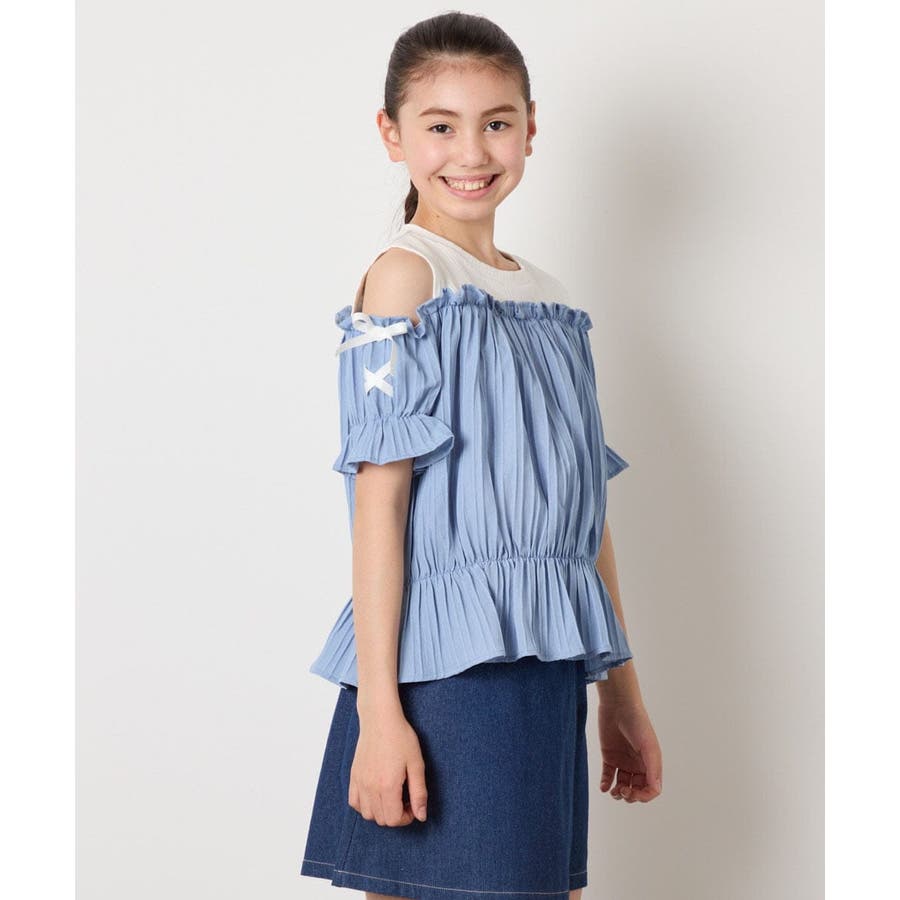 ・キッズに大人気!テレコのタンクトップとオフショルブラウスをドッキングしたレイヤード風デザイントップス。