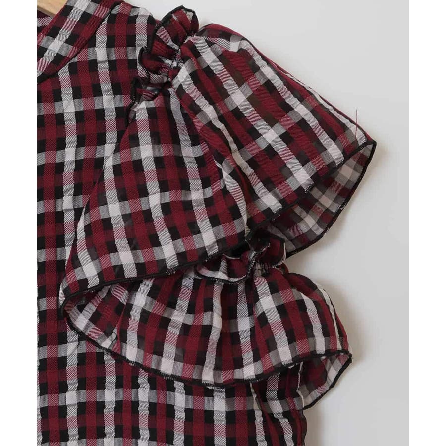 [140-150]【2WAY】シアーチェック柄ボリューム袖ブラウス