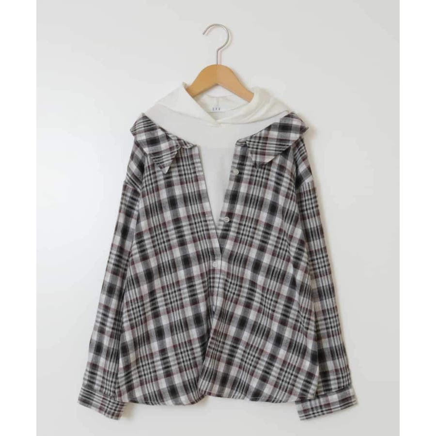 ・フード付きスウェットとシャツがドッキングした大人気!重ね着風デザイン。