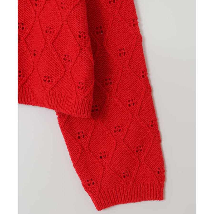 ・やや太めの糸で編んだ、レースのようなアイレット編みが高見えするデザイン。