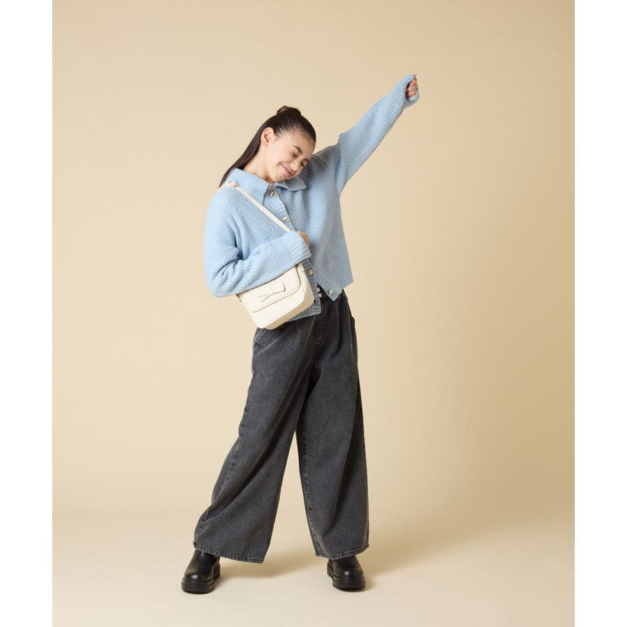 ・大きめの襟で小顔見えが叶う、かわいいカーディガン。