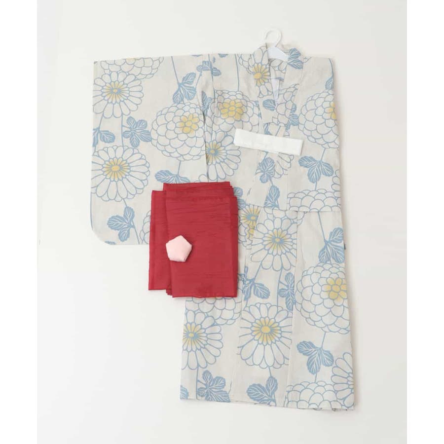 ・アイボリー・・・穏やかな色合い。花の優雅さが心地よい印象に。レッドの帯がセット。