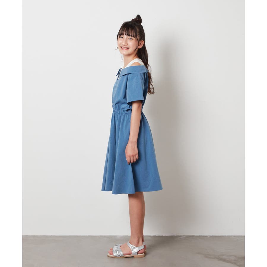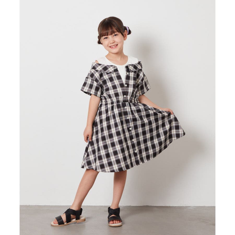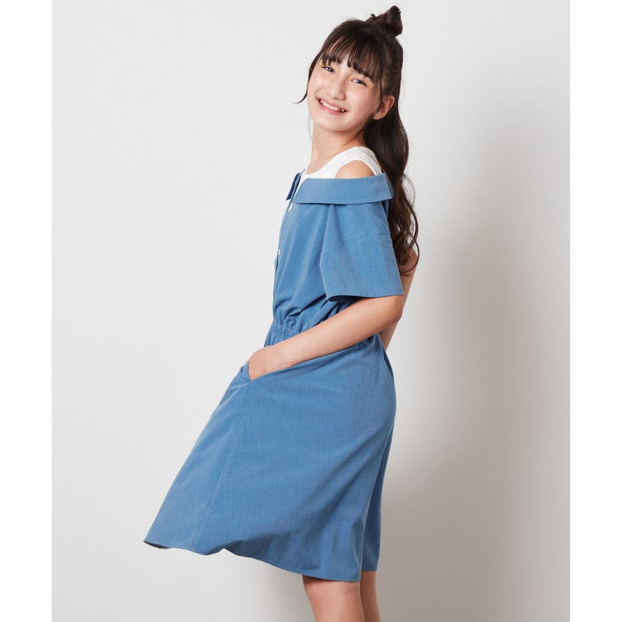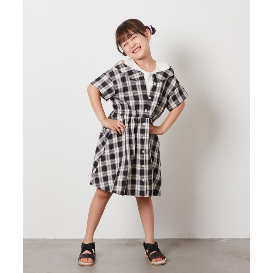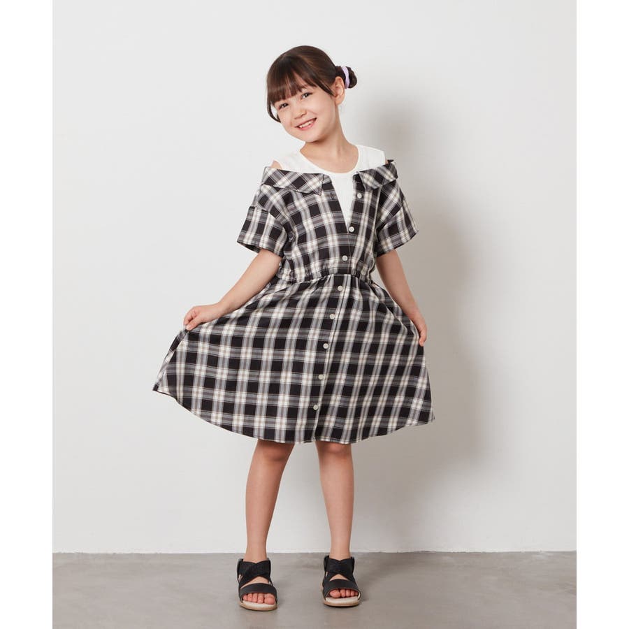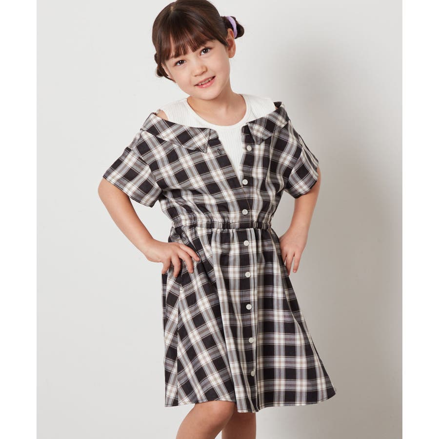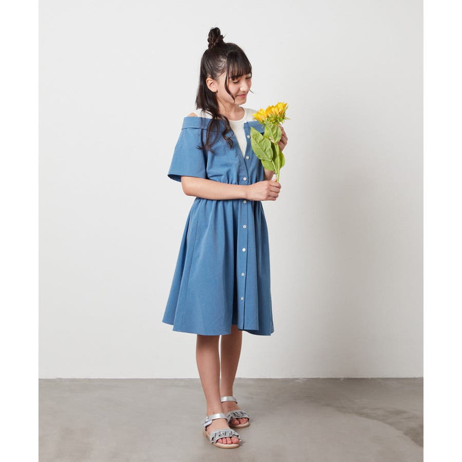 ・キッズに大人気なオフショルデザイン。肌がちら見えする肩出しディティールがヘルシーさをプラスします。