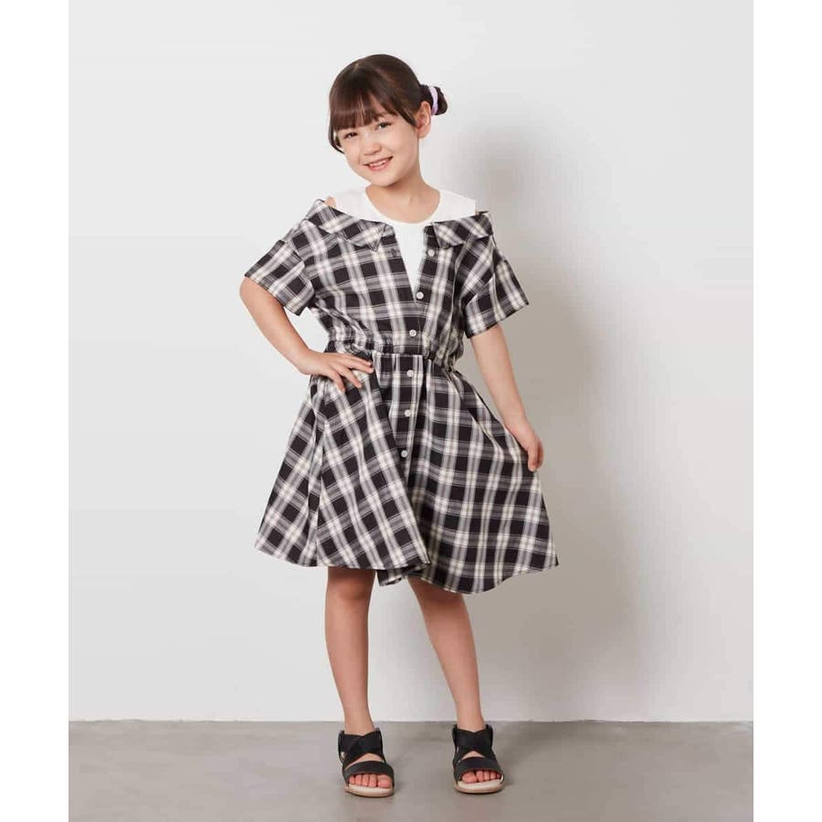 ・キッズに大人気なオフショルデザイン。肌がちら見えする肩出しディティールがヘルシーさをプラスします。